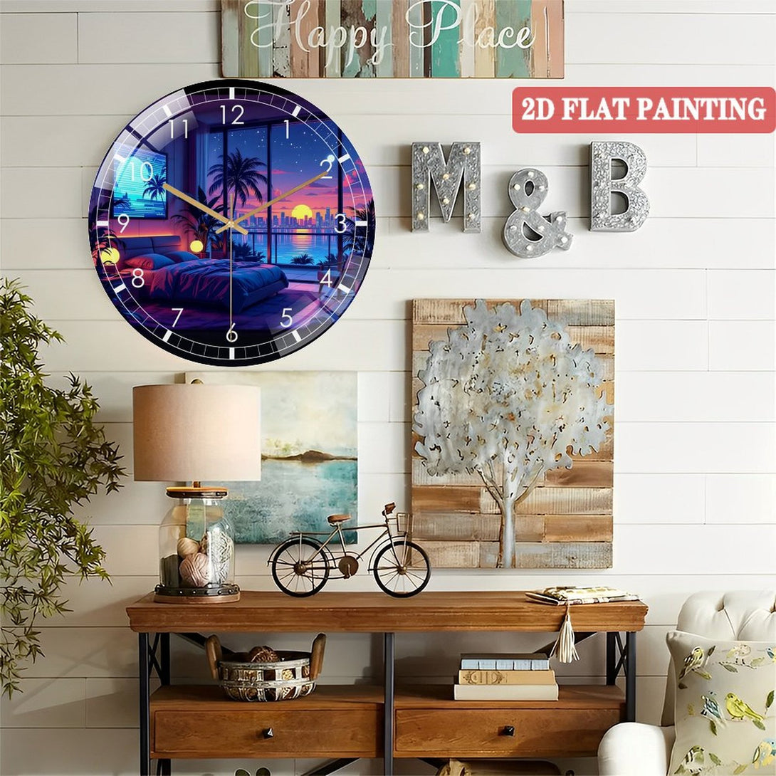 Decor Wall Clock: City View from Window Glass Wall Clock, RNatural View from City Ocean View Room Window Decor And Gift Wall Clock for Homes, Bars, Offices, Man Caves, Garages, And Living Rooms .