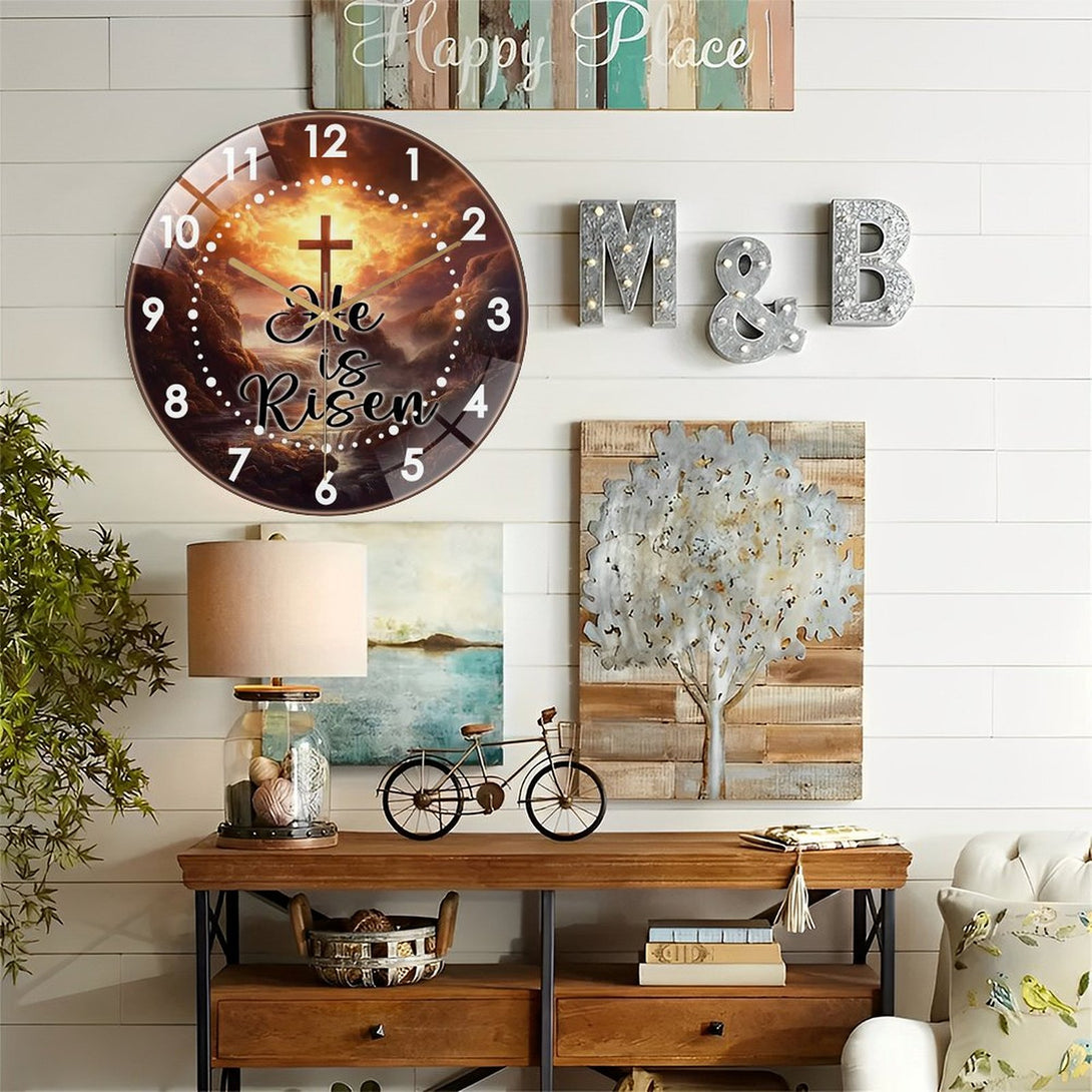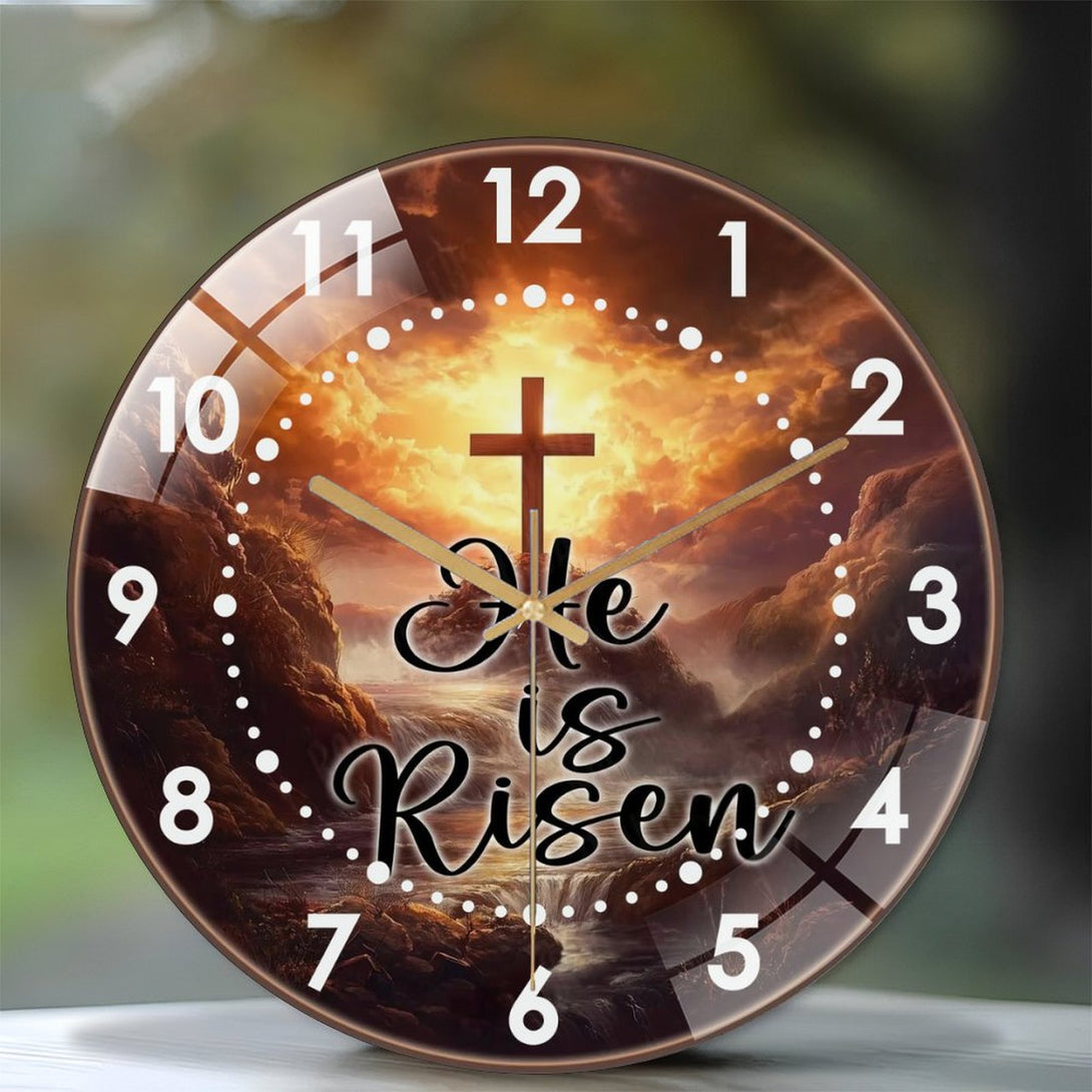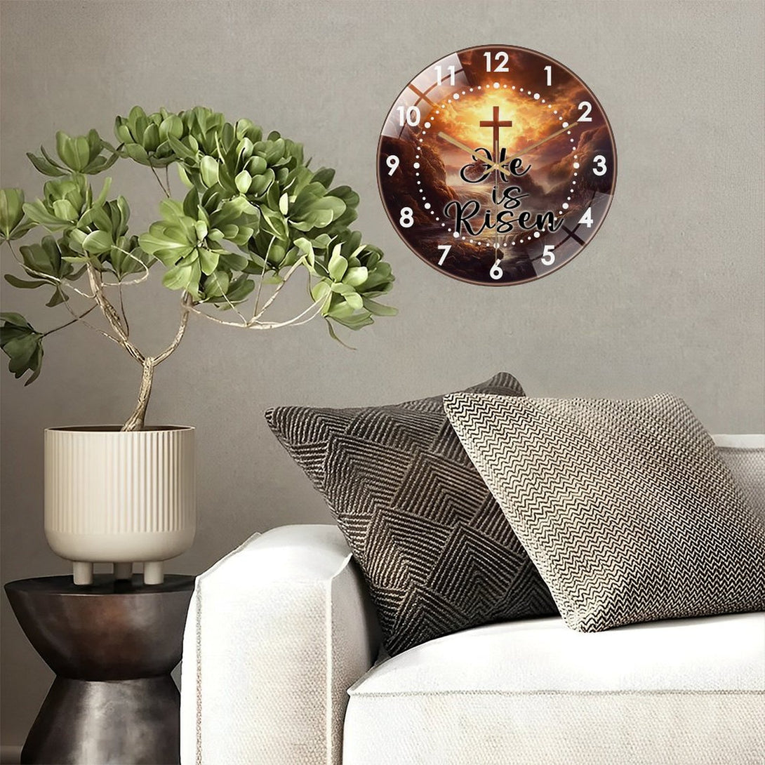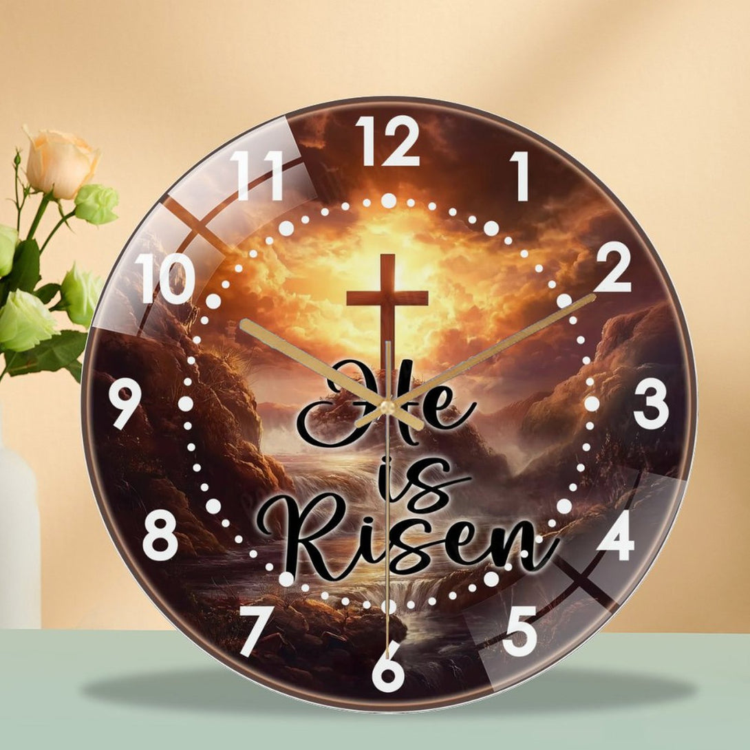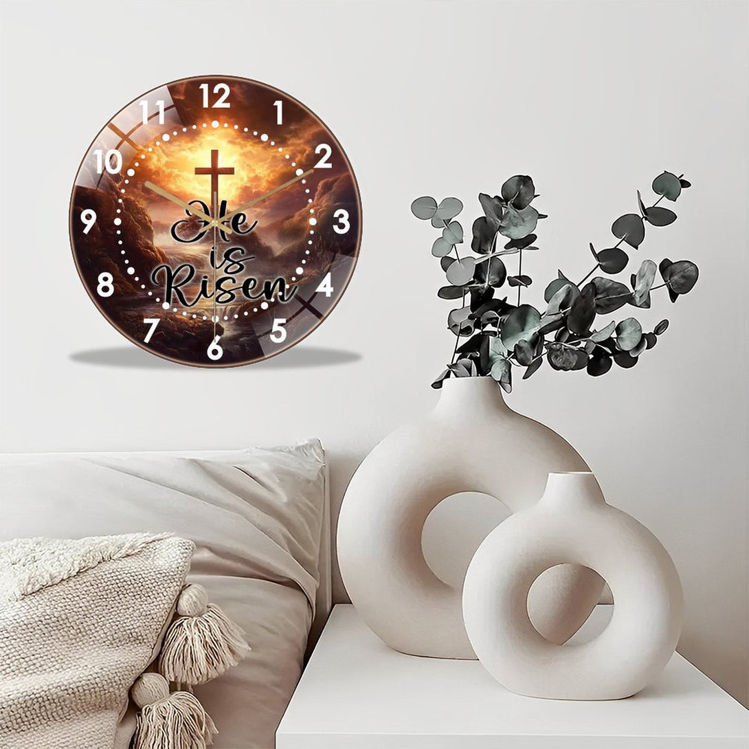 Decor Wall Clock: Cross He Is Risen Glass Wall Clock, Easter Christian Wall Clock for Homes, Bars, Offices, Man Caves, Garages, And Living Rooms .Also Makes A Great Gift. Style 12×12inch(30×30cm)