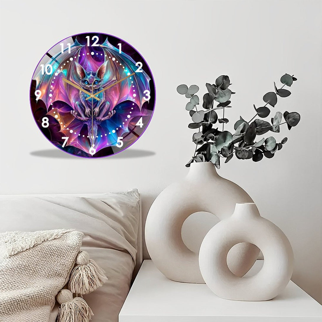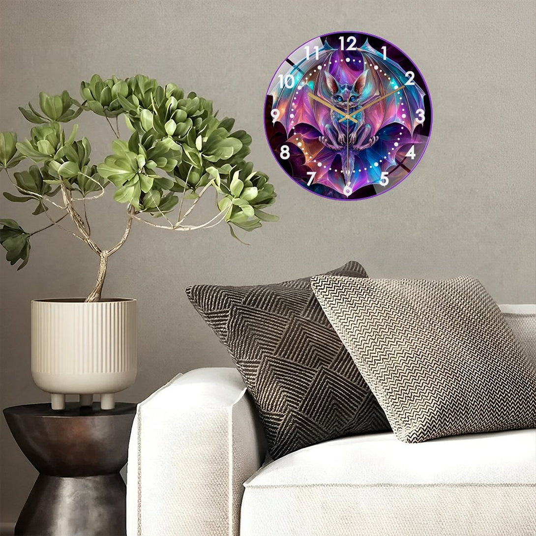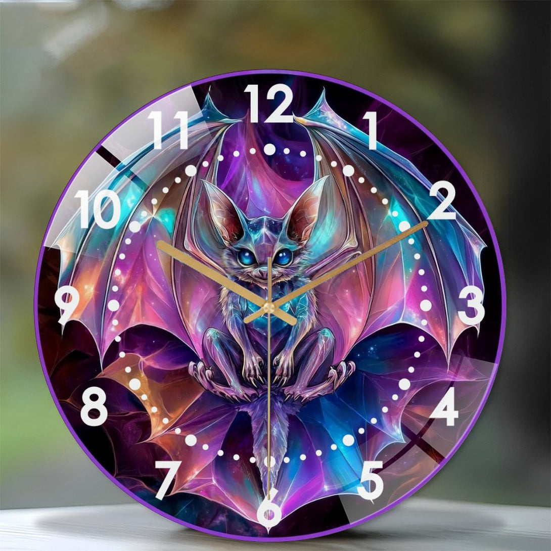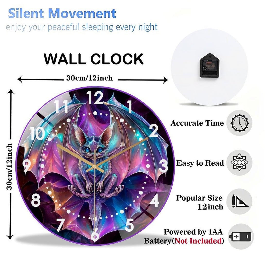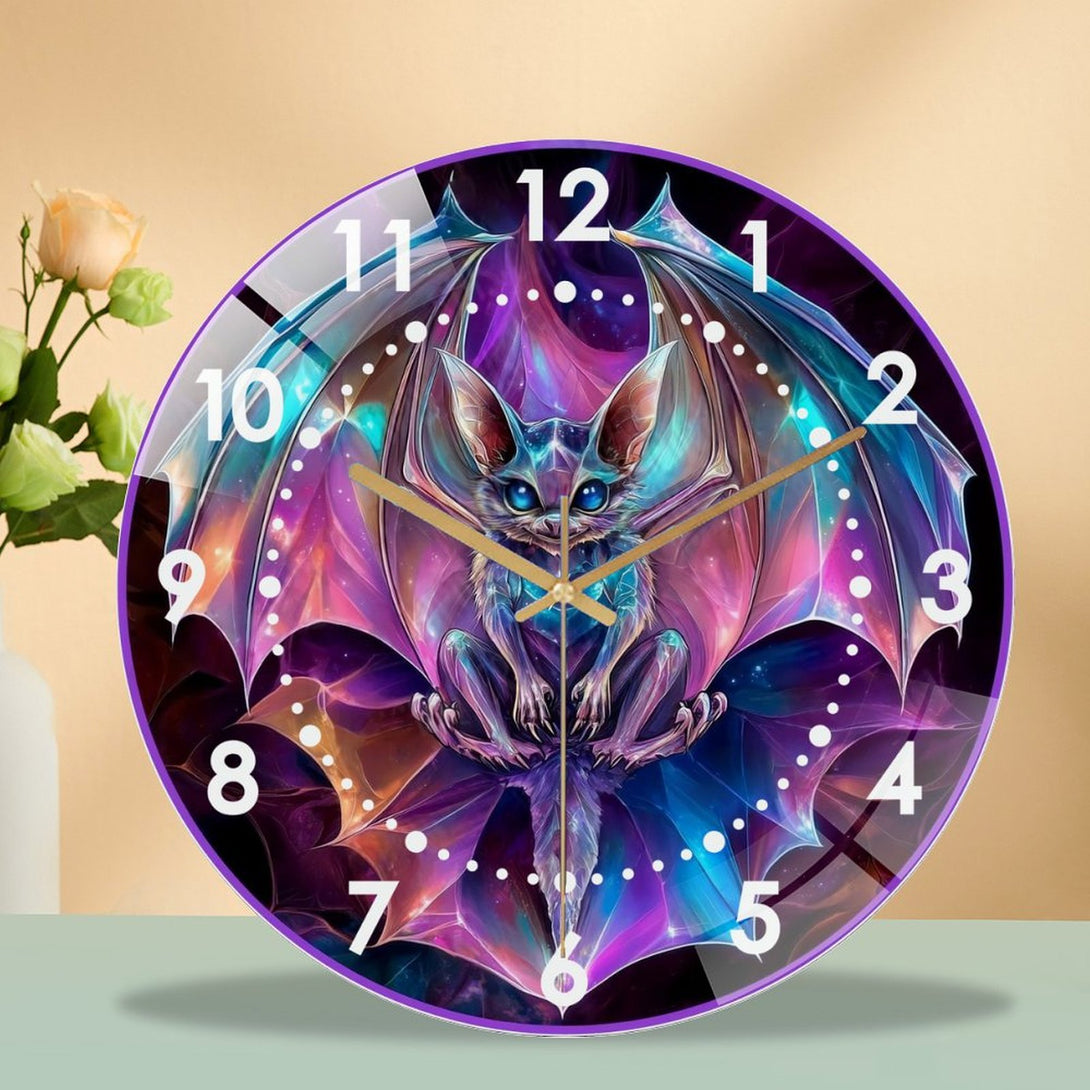 Cute Bat Glass Wall Clock, Cute Fall Hallo-ween Bat Wall Clock for Homes, Bars, Offices, Man Caves, Garages, And Living Rooms .Also Makes A Great Gift.,12×12inch(30×30cm)