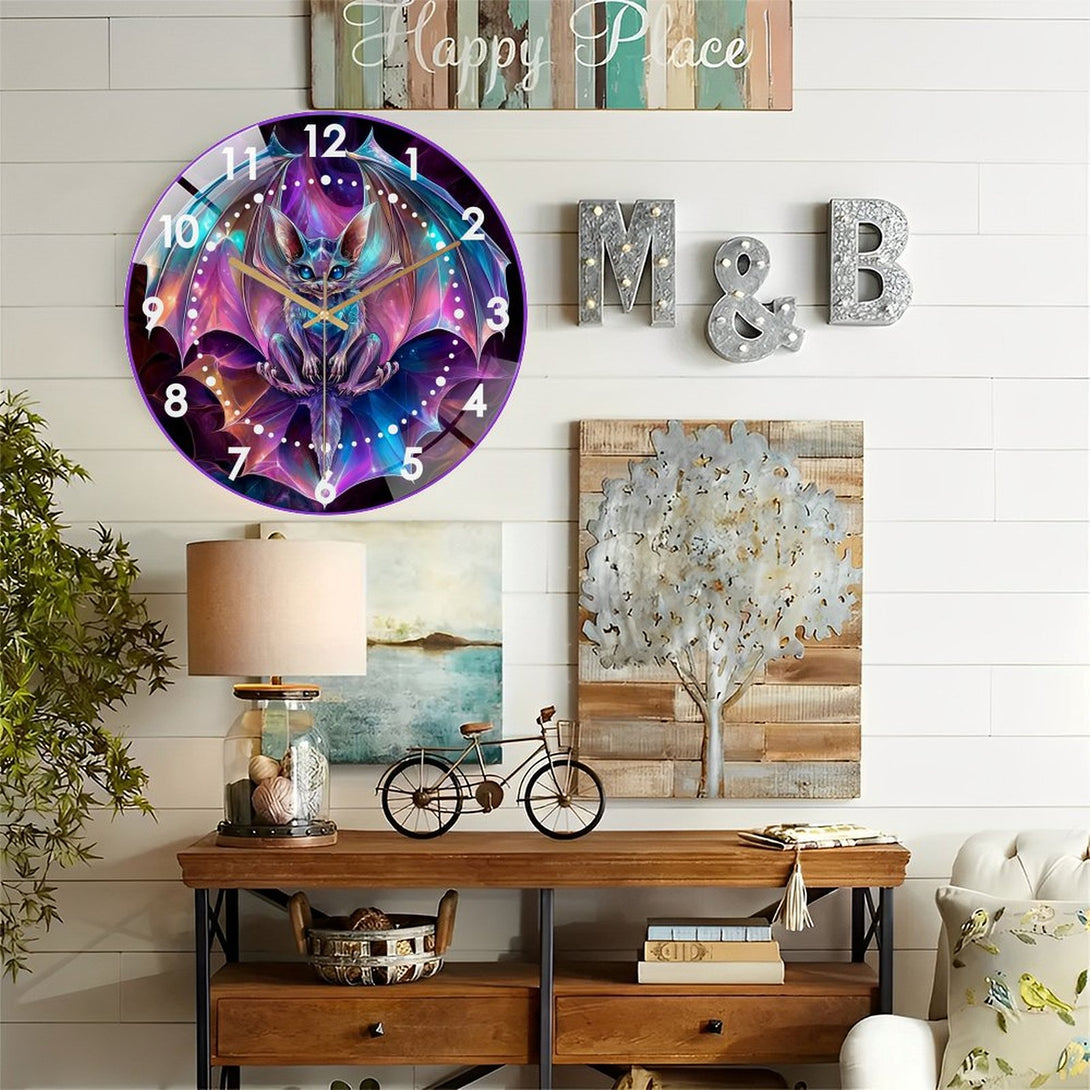 Decor Wall Clock: Cute Bat Glass Wall Clock, Cute Fall Hallo-ween Bat Wall Clock for Homes, Bars, Offices, Man Caves, Garages, And Living Rooms .Also Makes A Great Gift. Style 12×12inch(30×30cm)