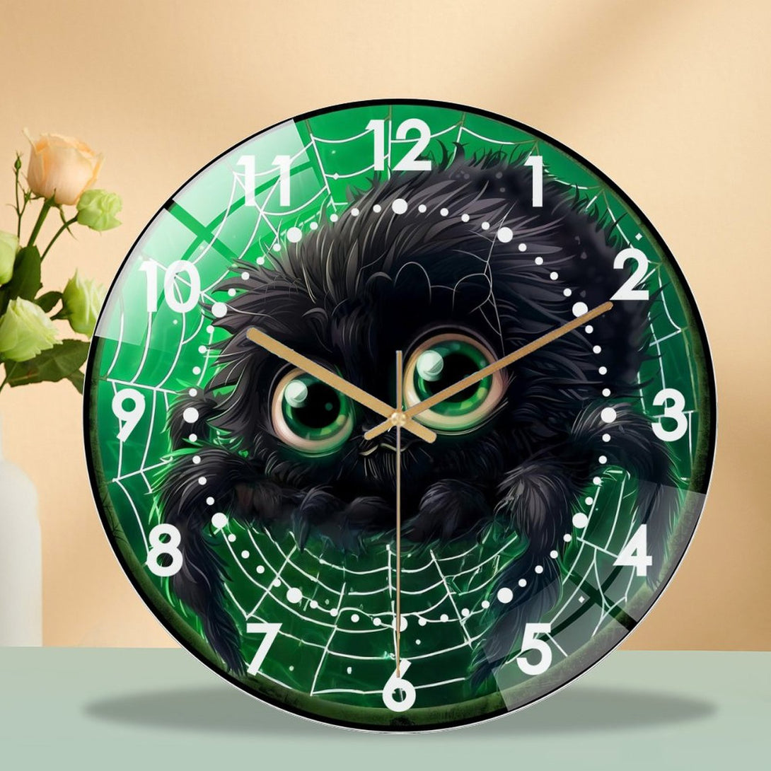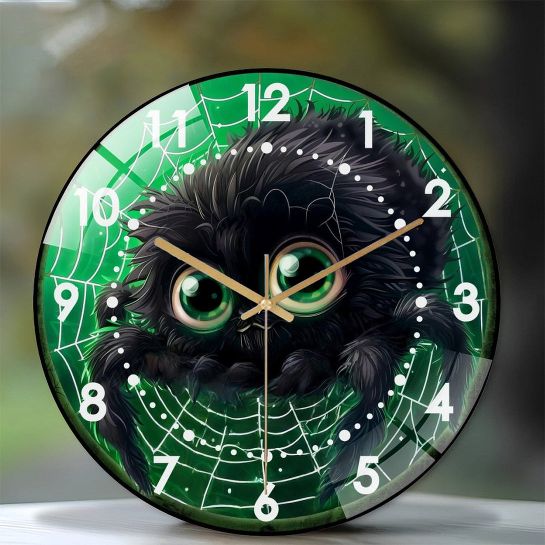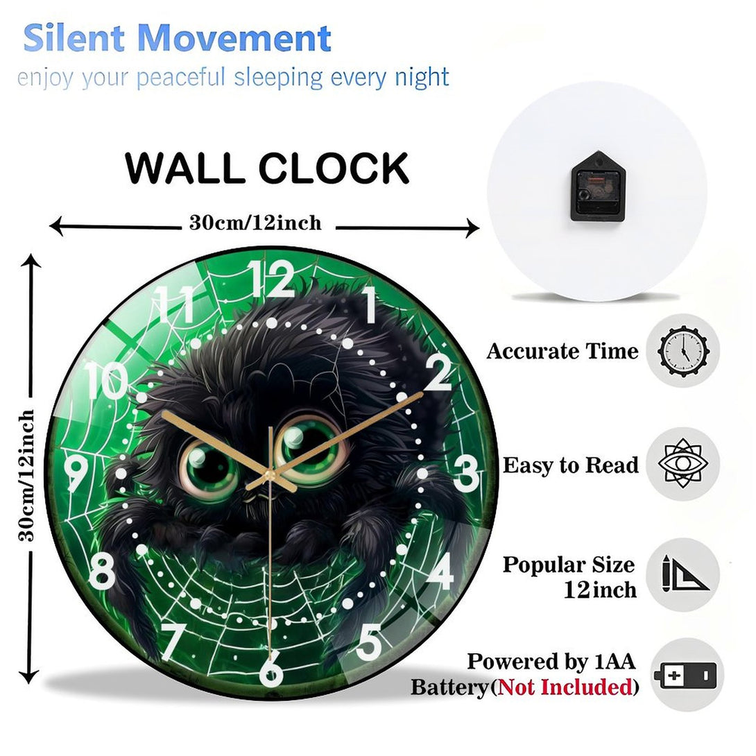 Cute Fall Spider Glass Wall Clock, Cute Furry Spider Hallo-ween Wall Clock for Homes, Bars, Offices, Man Caves, Garages, And Living Rooms .Also Makes A Great Gift.,12×12inch(30×30cm)