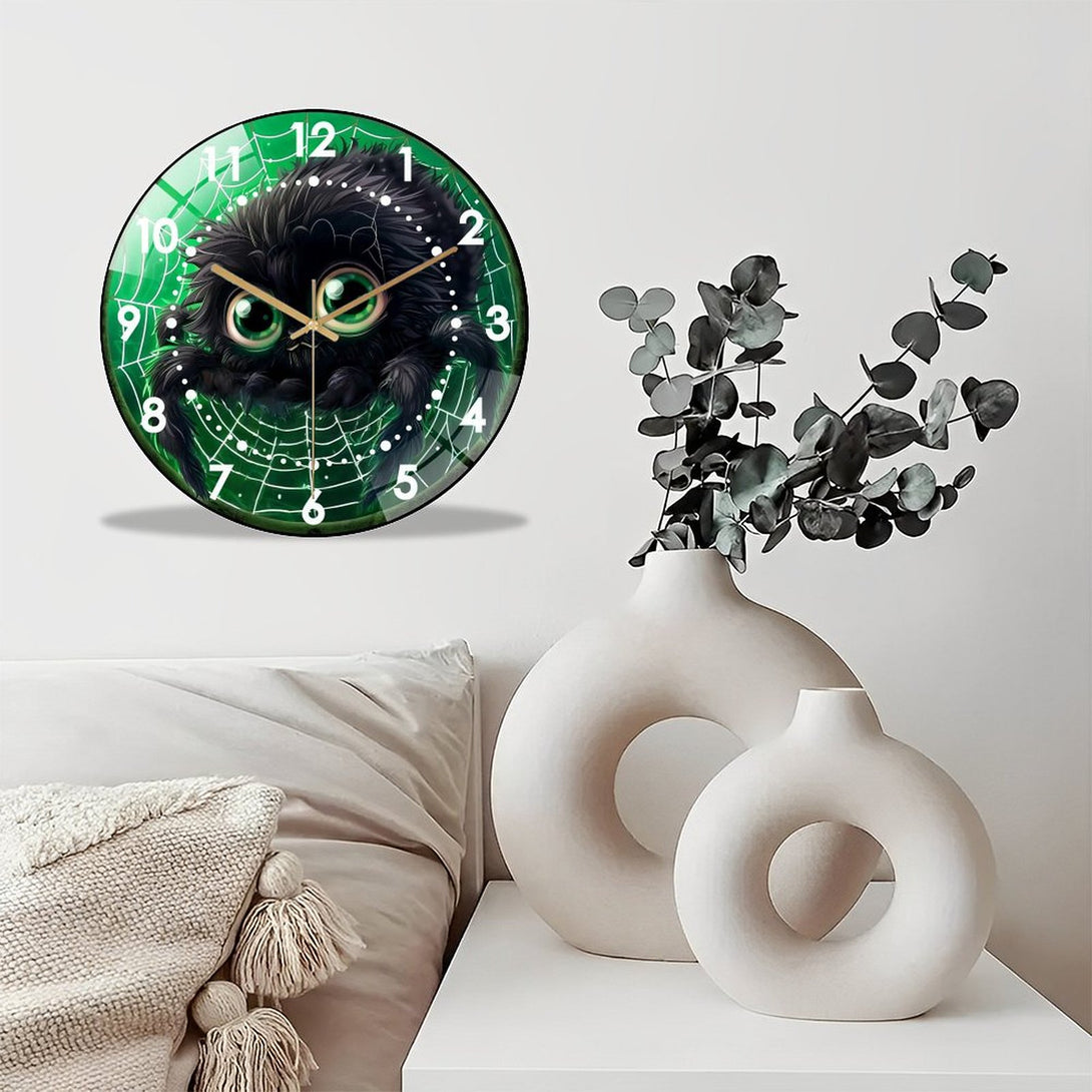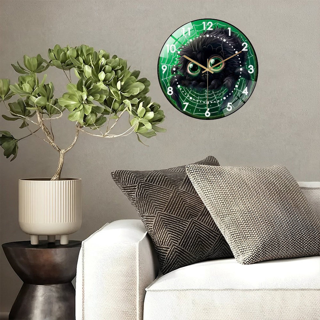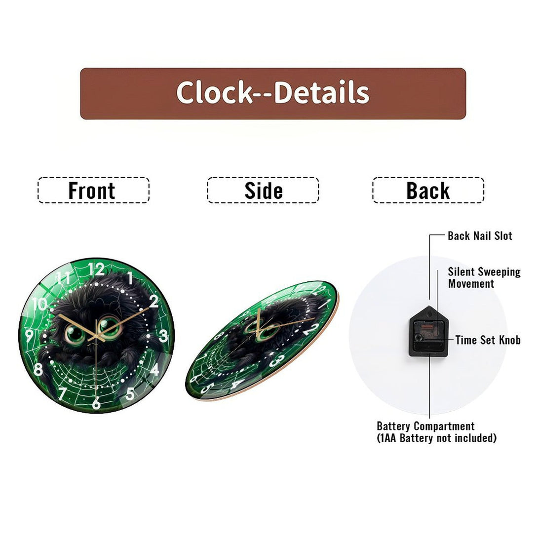 Cute Fall Spider Glass Wall Clock, Cute Furry Spider Hallo-ween Wall Clock for Homes, Bars, Offices, Man Caves, Garages, And Living Rooms .Also Makes A Great Gift.,12×12inch(30×30cm)