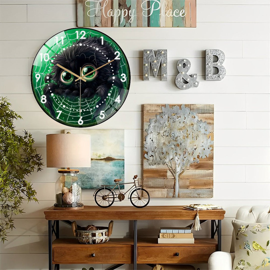 Decor Wall Clock: Cute Fall Spider Glass Wall Clock, Cute Furry Spider Hallo-ween Wall Clock for Homes, Bars, Offices, Man Caves, Garages, And Living Rooms .Also Makes A Great Gift.