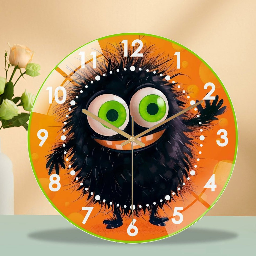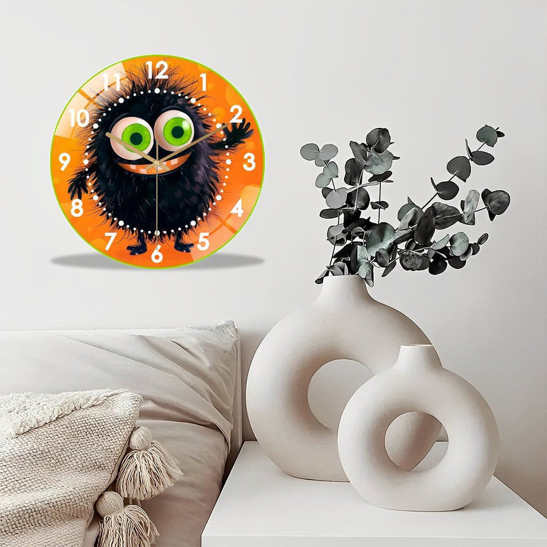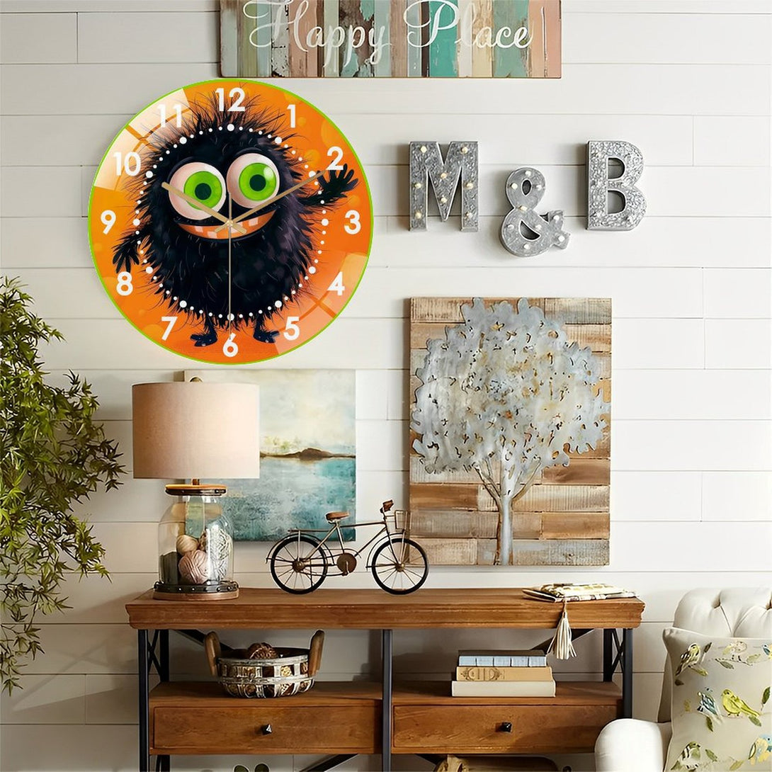 Decor Wall Clock: Cute Furry Monster Glass Wall Clock, Hallo-ween Cute Fall Decor Wall Clock for Homes, Bars, Offices, Man Caves, Garages, And Living Rooms .Also Makes A Great Gift.