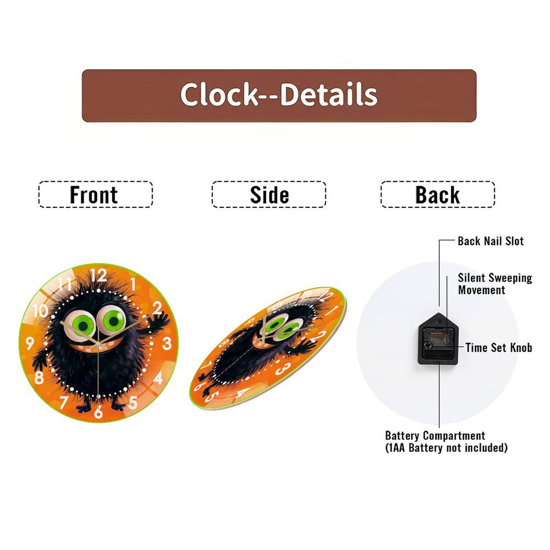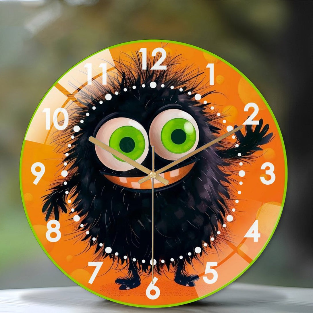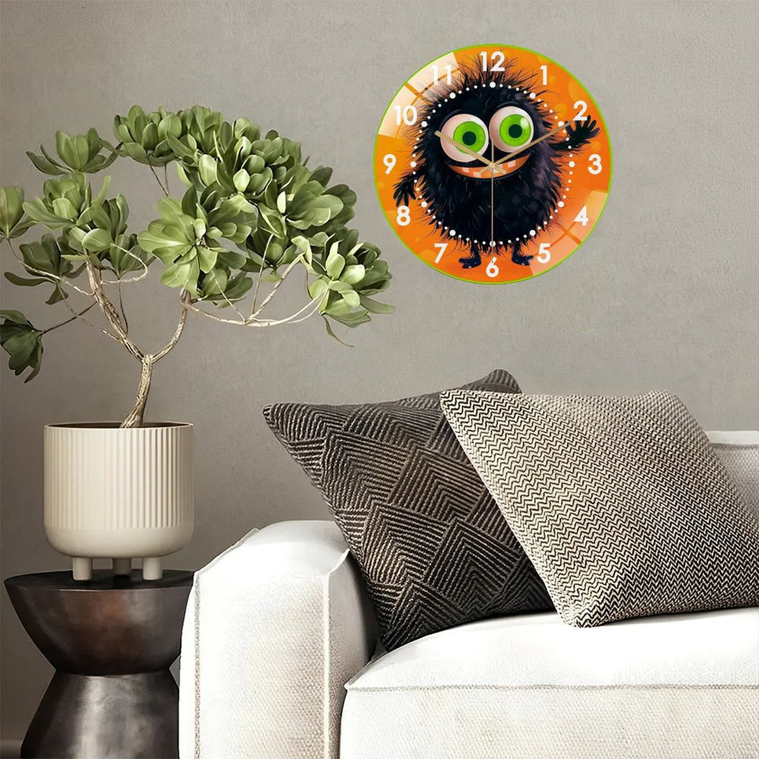 Decor Wall Clock: Cute Furry Monster Glass Wall Clock, Hallo-ween Cute Fall Decor Wall Clock for Homes, Bars, Offices, Man Caves, Garages, And Living Rooms .Also Makes A Great Gift.