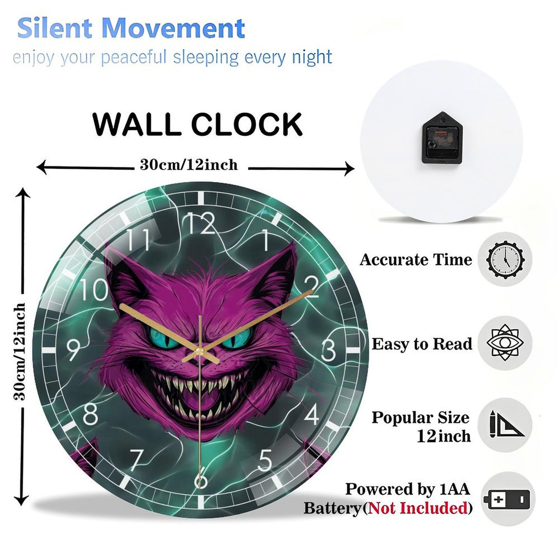 Evil Cheshire Cat Glass Wall Clock, Cat Decor And Gift Wall Clock for Homes, Bars, Offices, Man Caves, Garages, And Living Rooms .Also Makes A Great Gift.,12×12inch(30×30cm)