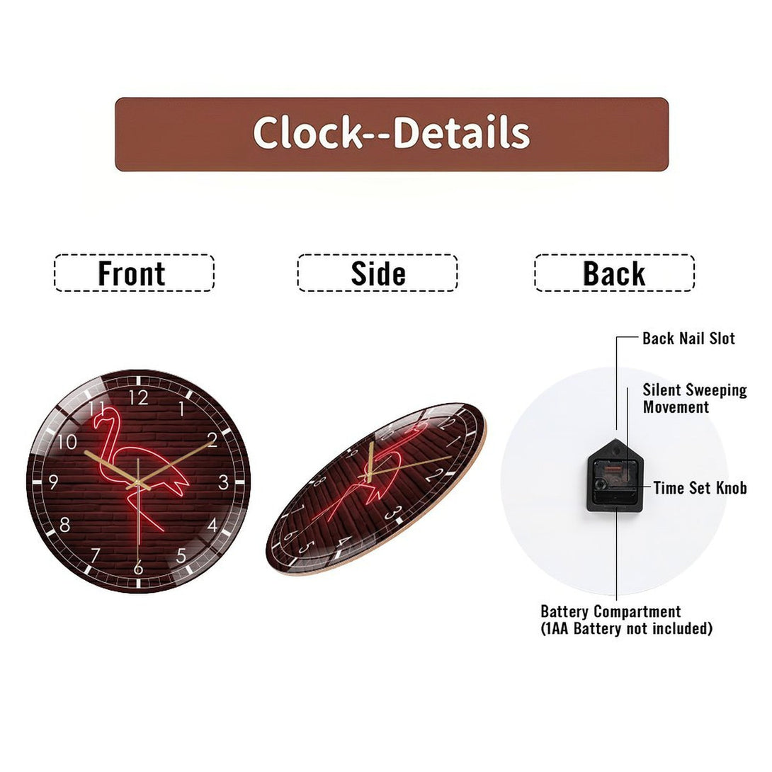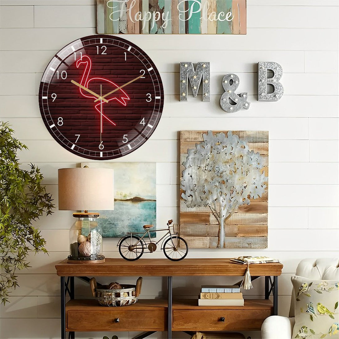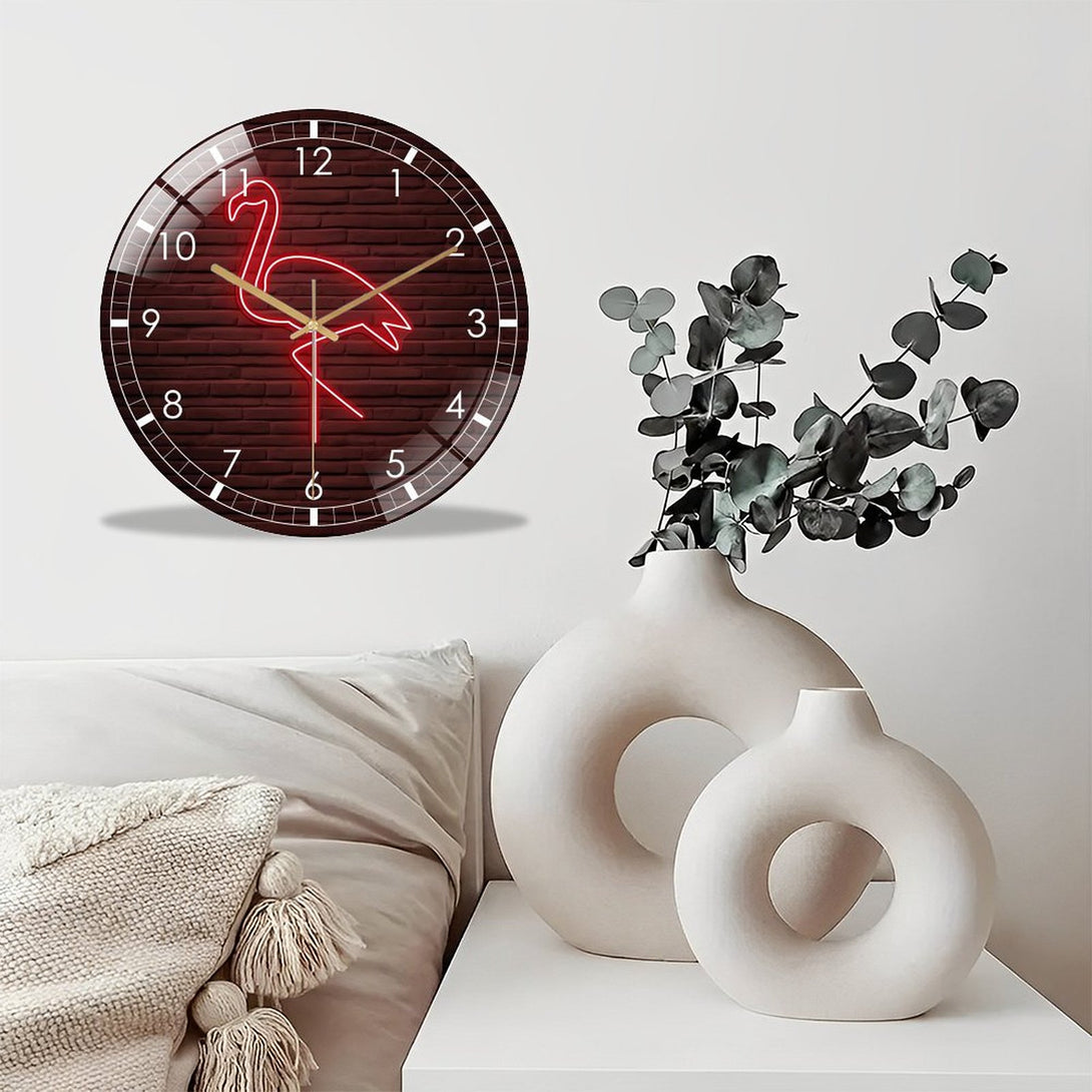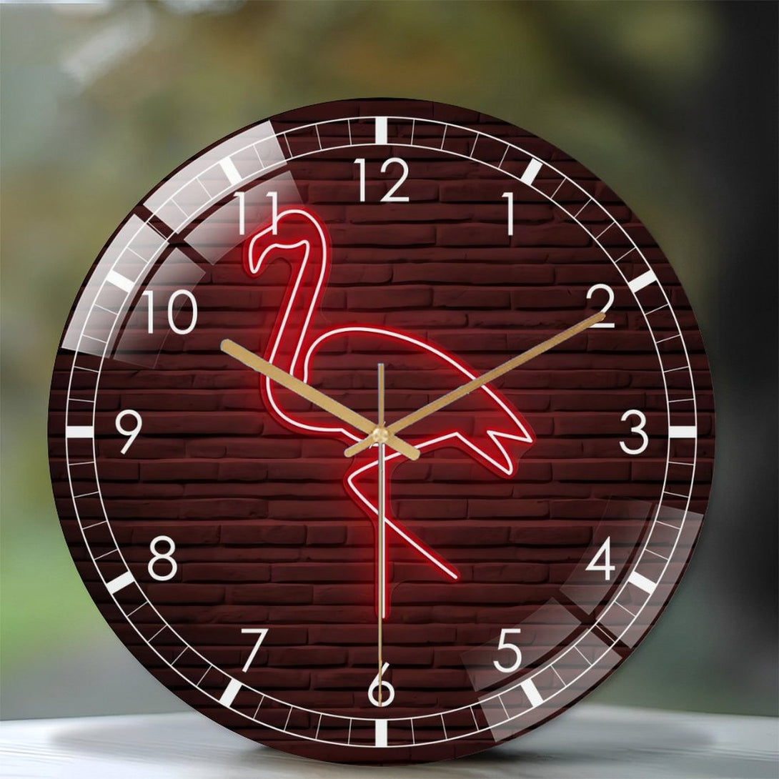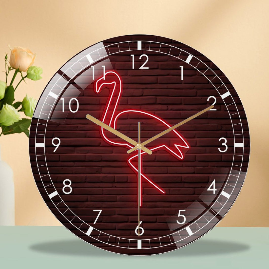 Decor Wall Clock: Fla-mingo Glass Wall Clock ,Retro Fla-mingo Bird Wall Decor Wall Clock for Homes, Bars, Offices, Man Caves, Garages, And Living Rooms. Kids Room Decor,