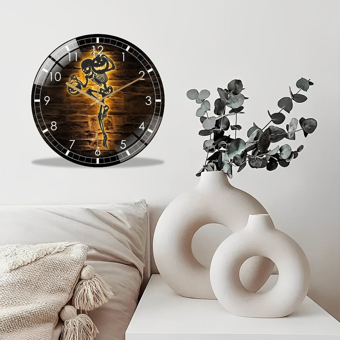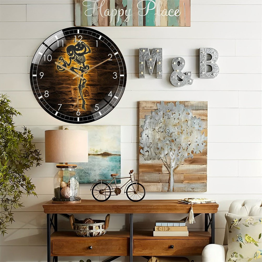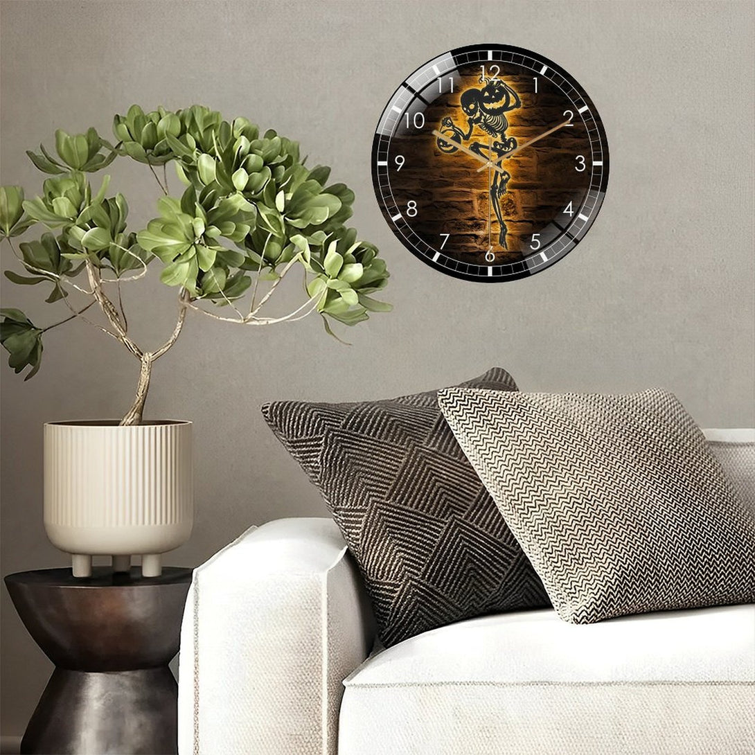 Funny Skeleton Dancer Glass Wall Clock– Skeleton Dancing Wall Clock for Home Decor Wedding Gift Decor. Man Cave Hanging Door Housewarming Hall-oween Gift,12×12inch(30×30cm)