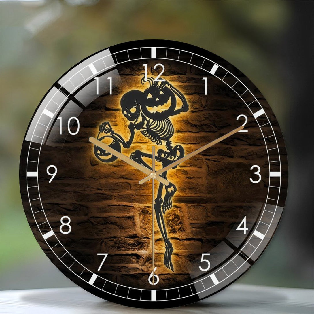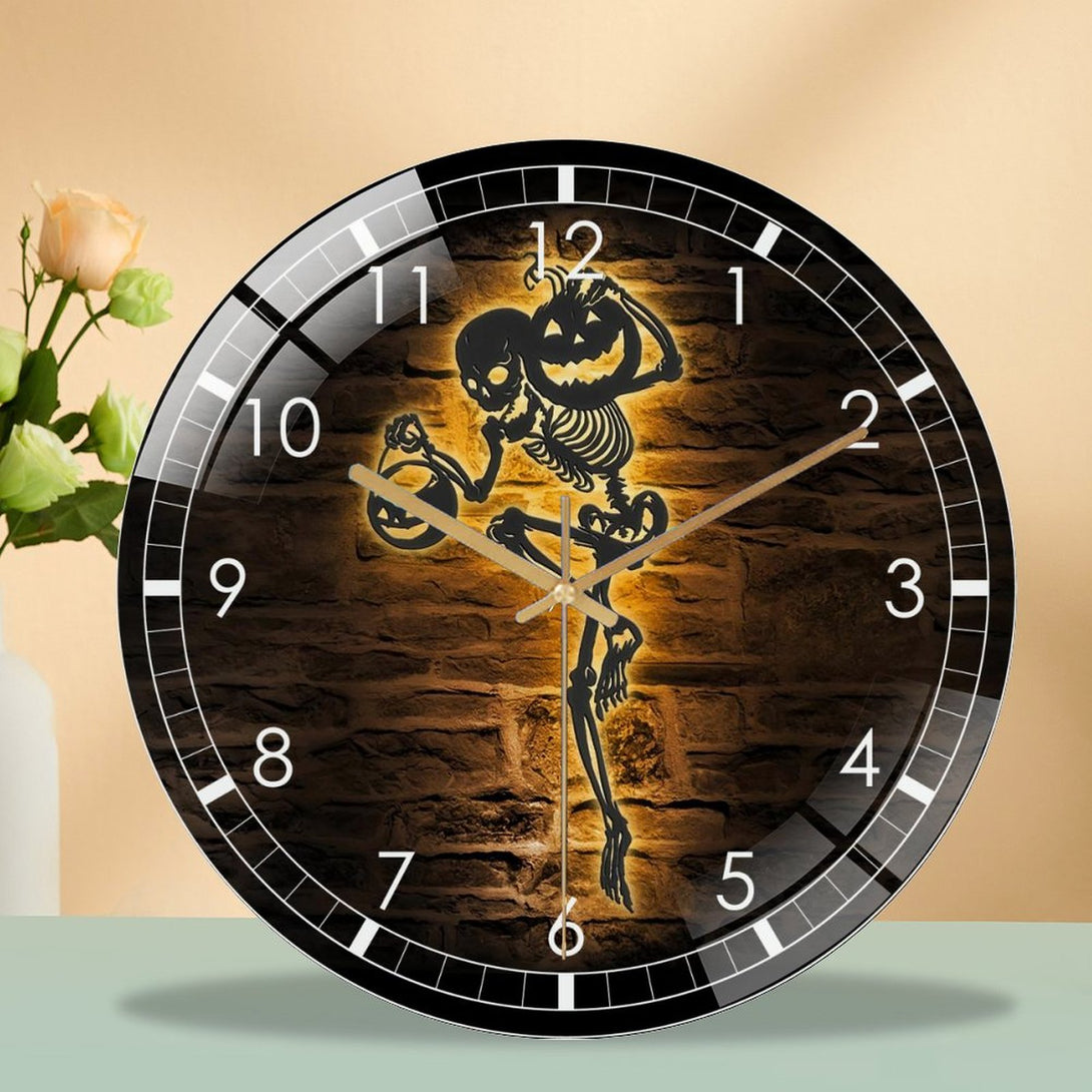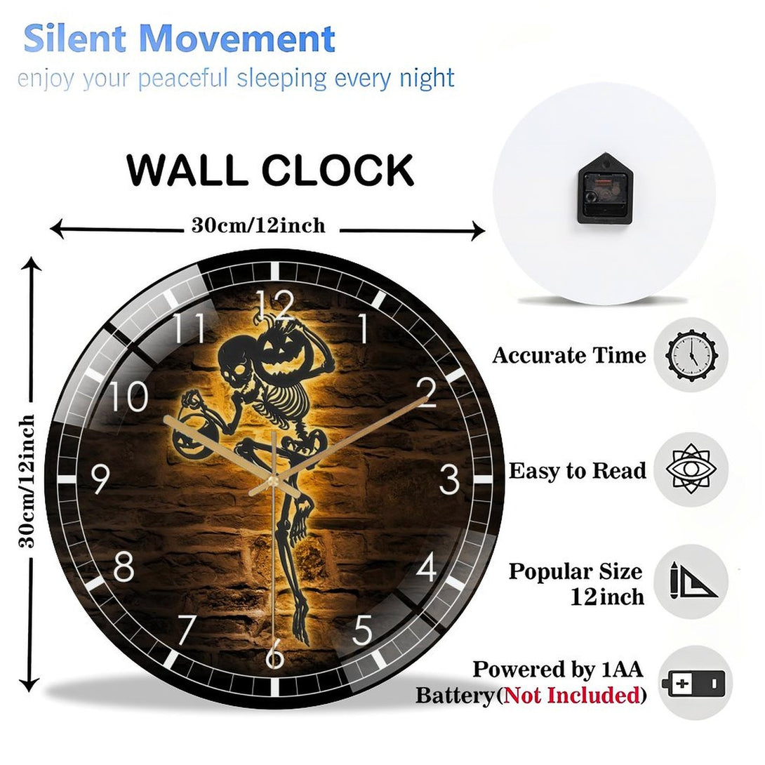 Funny Skeleton Dancer Glass Wall Clock– Skeleton Dancing Wall Clock for Home Decor Wedding Gift Decor. Man Cave Hanging Door Housewarming Hall-oween Gift,12×12inch(30×30cm)