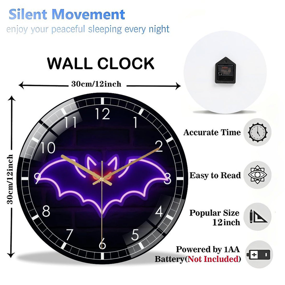 Gho St Bat Glass Wall Clock ,Gho St Pumpkin Hallo-ween Wall Clock for Home Decor, Christmas Gift for Bedroom, Game Room, Man Cave, Party Decor, Gym Lover Gift.,12×12inch(30×30cm)