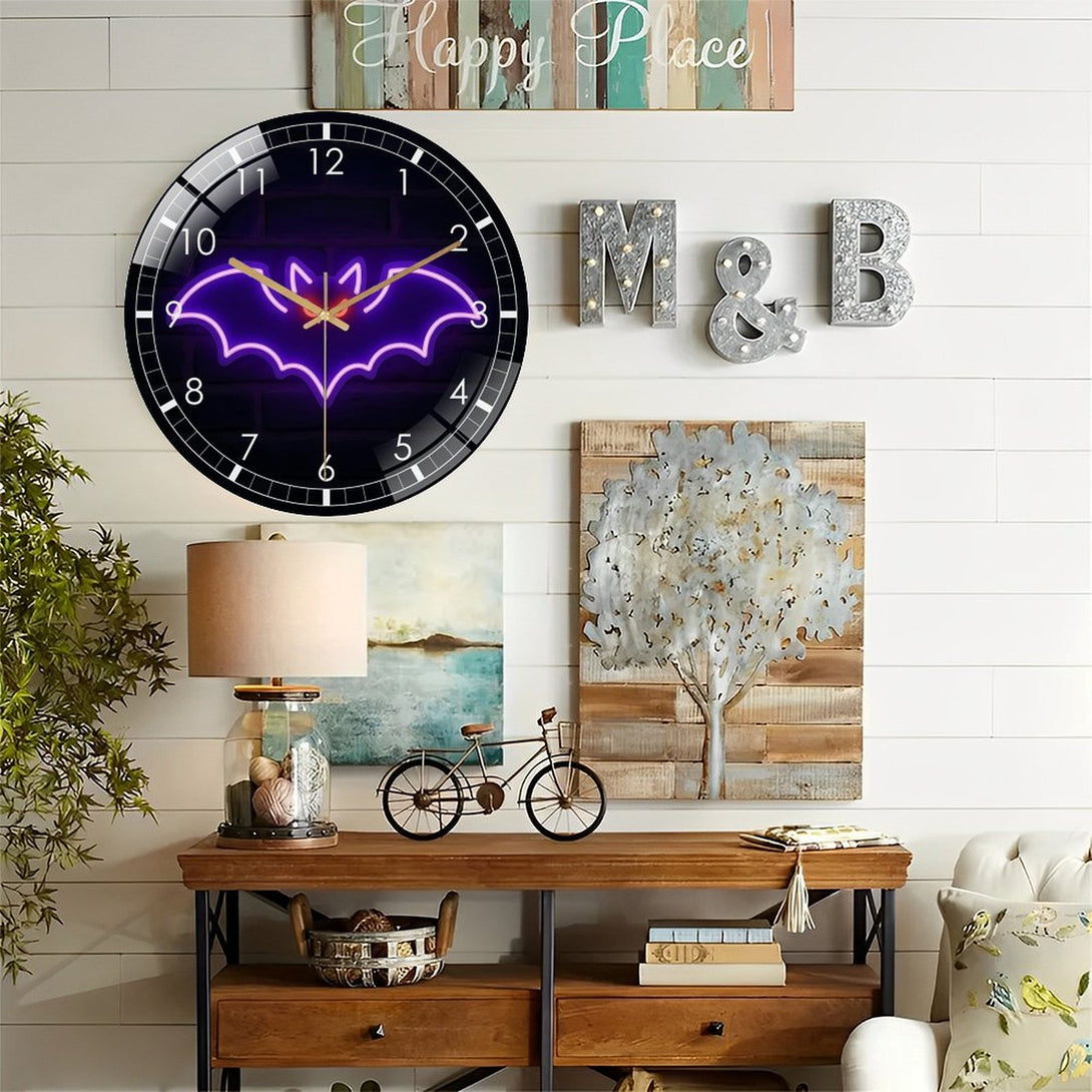 Decor Wall Clock: Gho St Bat Glass Wall Clock ,Gho St Pumpkin Hallo-ween Wall Clock for Home Decor, Christmas Gift for Bedroom, Game Room, Man Cave, Party Decor, Gym Lover Gift.