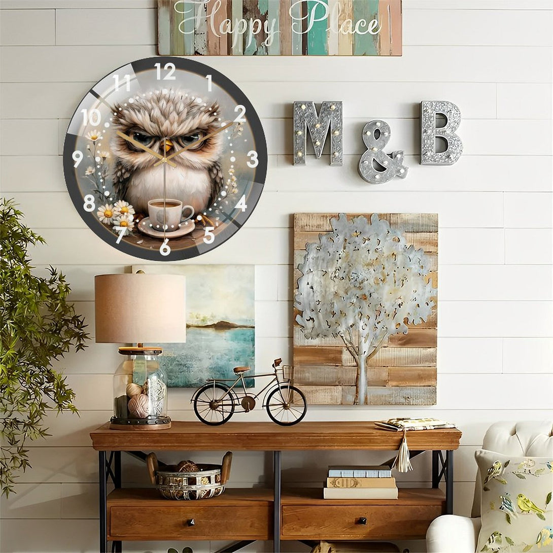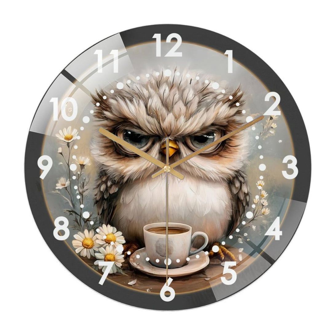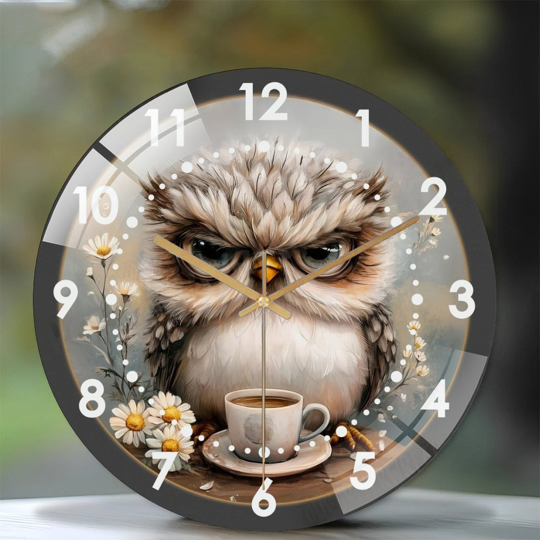 Decor Wall Clock: Grumpy- Owl Coffee Glass Wall Clock,Owl Decor Wall Clock for Homes, Bars, Offices, Man Caves, Garages, And Living Rooms .Also Makes A Great Gift. Style 12×12inch(30×30cm)