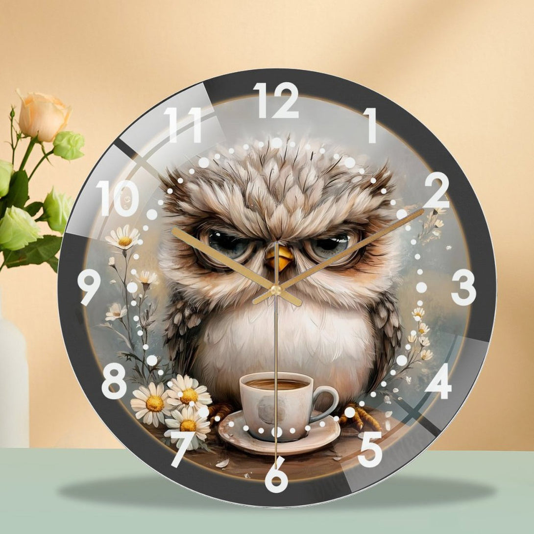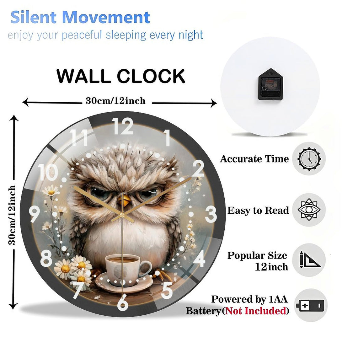 Grumpy- Owl Coffee Glass Wall Clock,Owl Decor Wall Clock for Homes, Bars, Offices, Man Caves, Garages, And Living Rooms .Also Makes A Great Gift.,12×12inch(30×30cm)