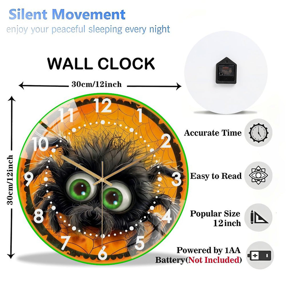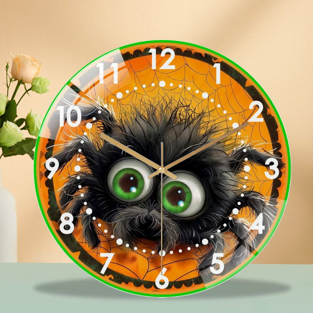 Hallo-ween Cute Furry Spider Glass Wall Clock, Cute Furry Spider Wall Clock for Homes, Bars, Offices, Man Caves, Garages, And Living Rooms .Also Makes A Great Gift.,12×12inch(30×30cm)