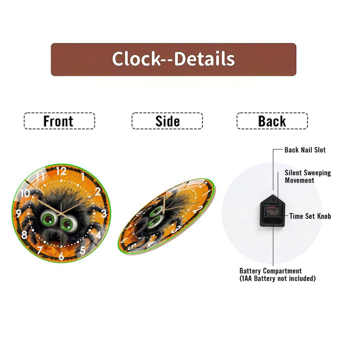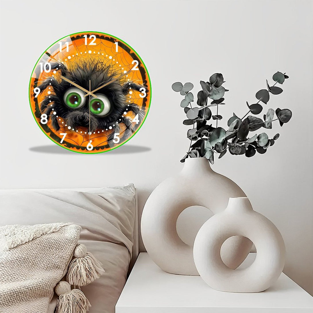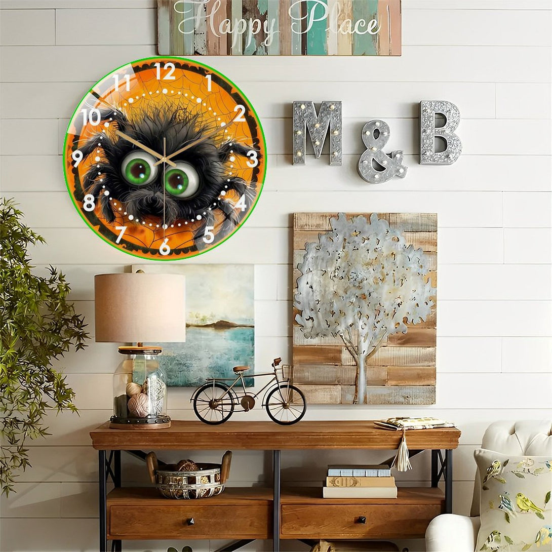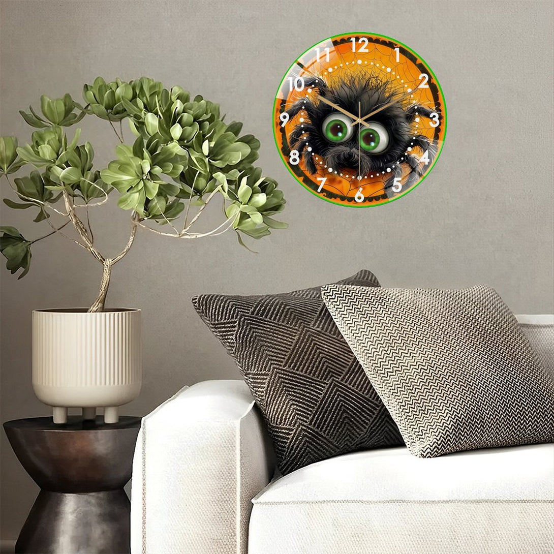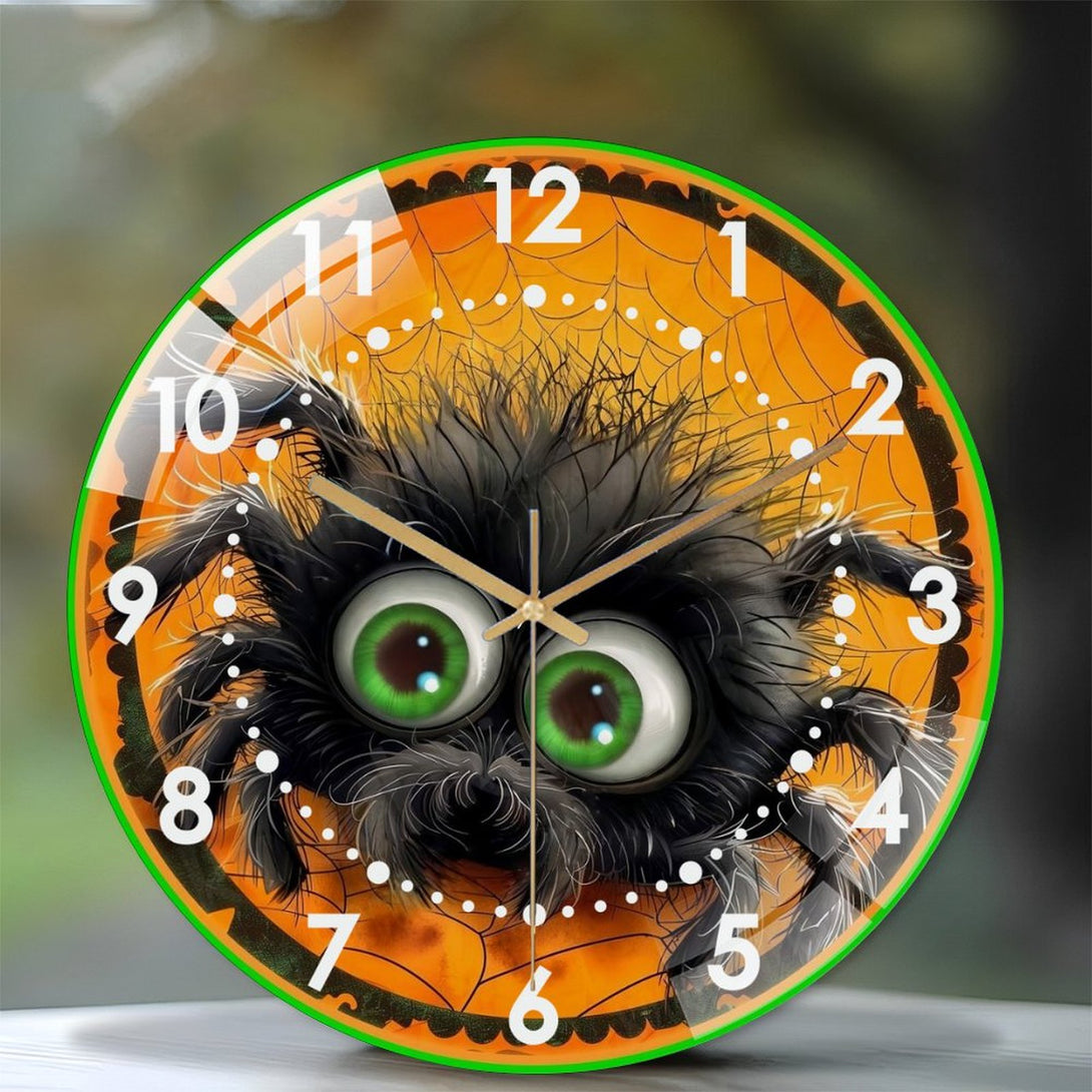 Decor Wall Clock: Hallo-ween Cute Furry Spider Glass Wall Clock, Cute Furry Spider Wall Clock for Homes, Bars, Offices, Man Caves, Garages, And Living Rooms .Also Makes A Great Gift.