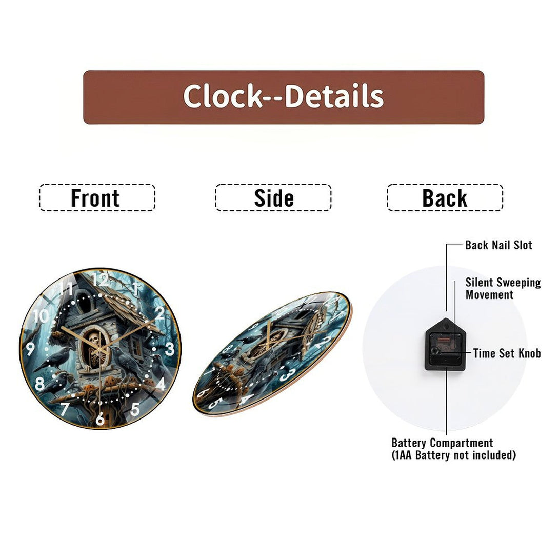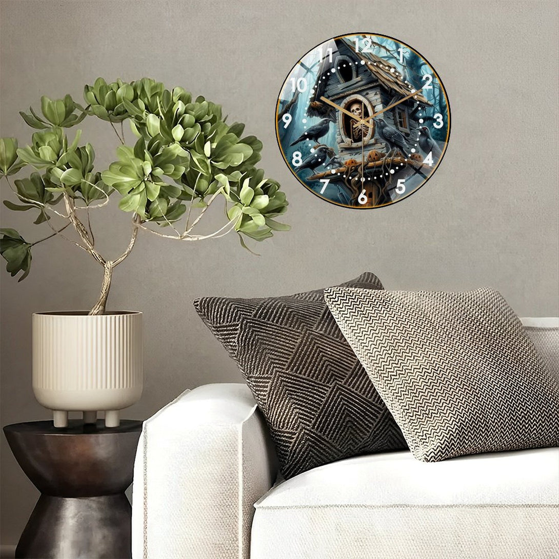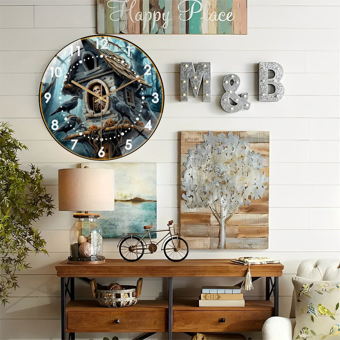 Decor Wall Clock: Hallo-ween SkeletonGlass Wall Clock, Raven Wall Clock for Homes, Bars, Offices, Man Caves, Garages, And Living Rooms .Also Makes A Great Gift. Style 12×12inch(30×30cm)