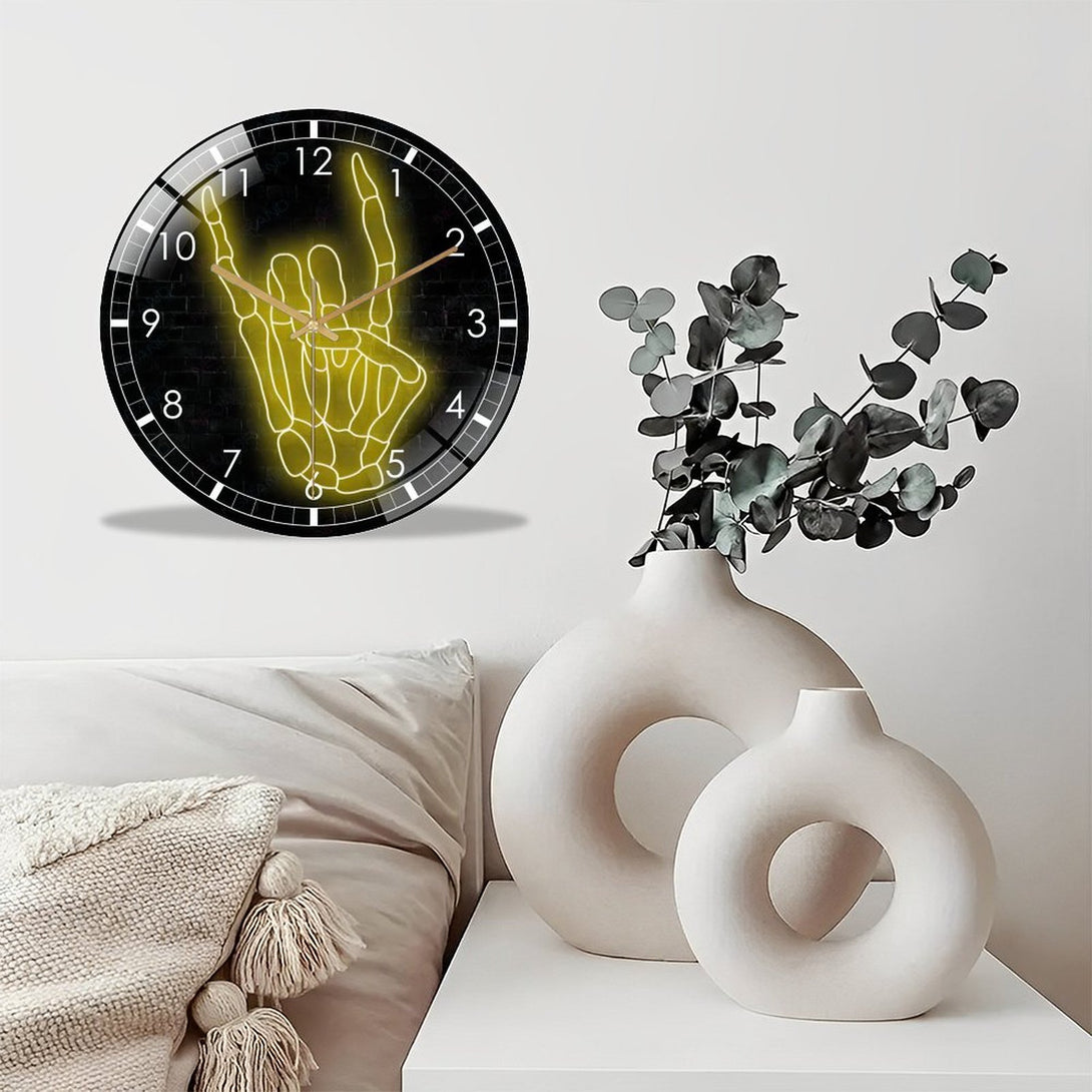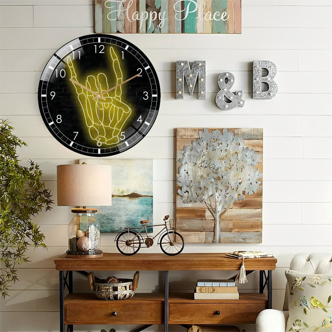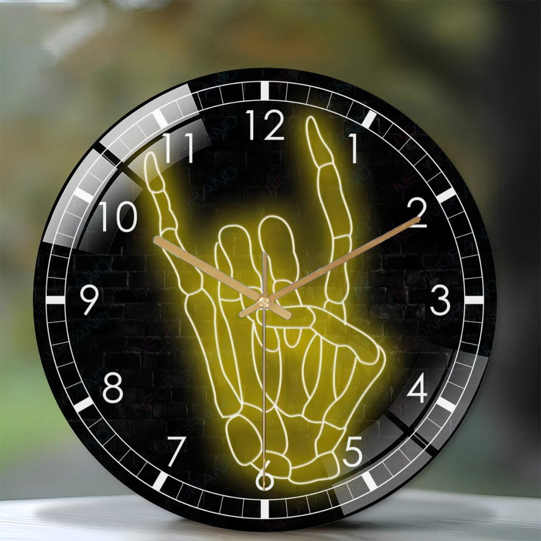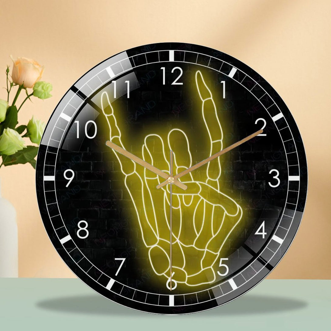 Decor Wall Clock: Hallo-ween Skellihand Glass Wall Clock, Skeleton Hand Wall Clock for Home Decor Wedding Gift Decor. Hallo-ween Valentine Gift, Skull Lover Gift, Gothic Home Decor, Wedding Gift