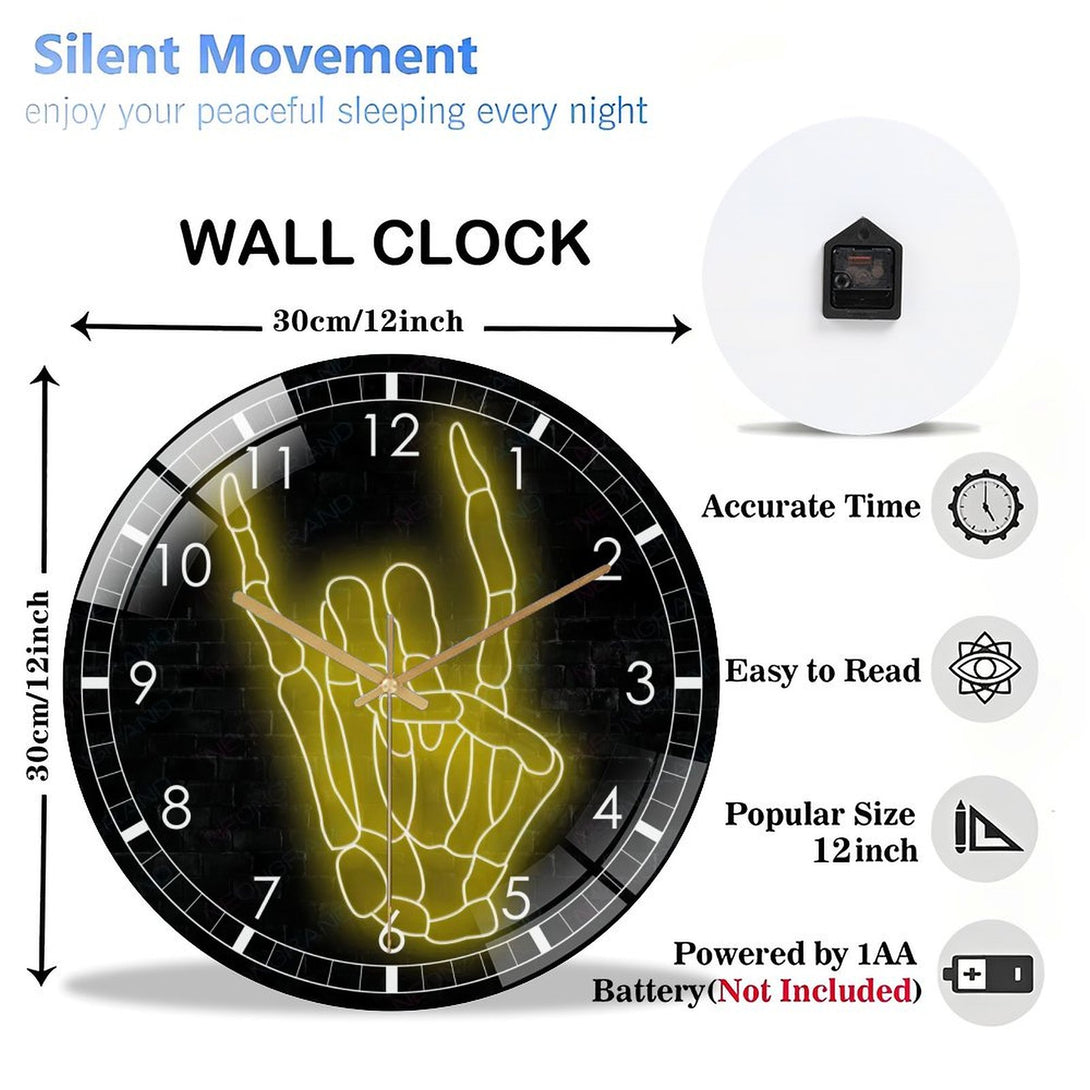 Hallo-ween Skellihand Glass Wall Clock, Skeleton Hand Wall Clock for Home Decor Wedding Gift Decor. Hallo-ween Valentine Gift, Skull Lover Gift, Gothic Home Decor, Wedding Gift,12×12inch(30×30cm)