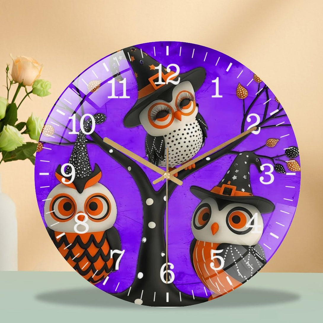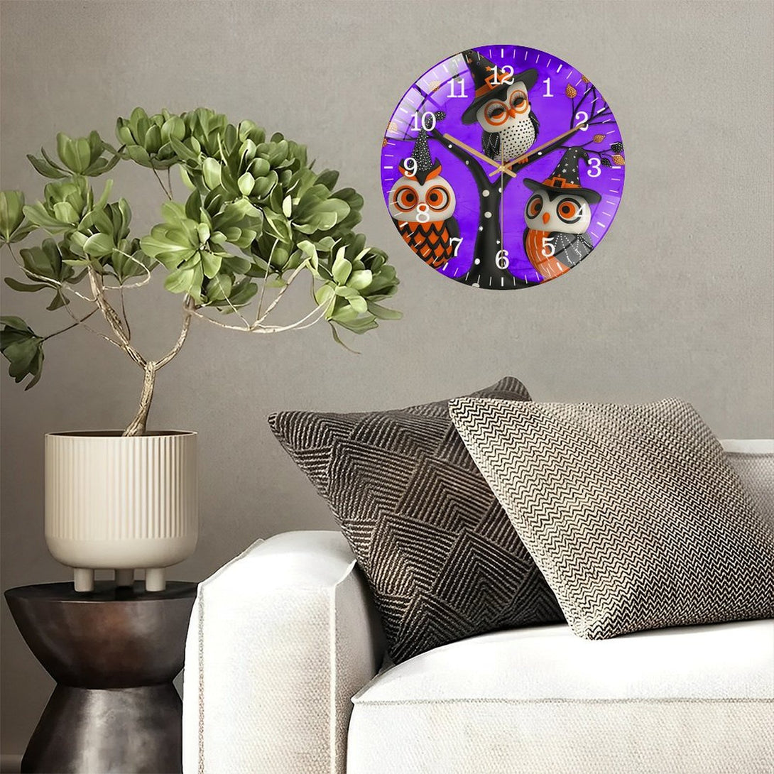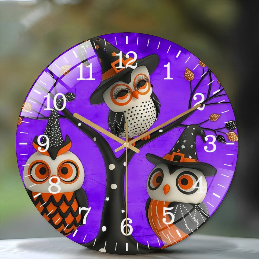 Halloween- Owl Glass Wall Clock, Witch Owls Fall Wall Decor Or Ornamen Decor Wall Clock for Homes, Bars, Offices, Man Caves, Garages, And Living Rooms .Also Makes A Great Gift.,12×12inch(30×30cm)