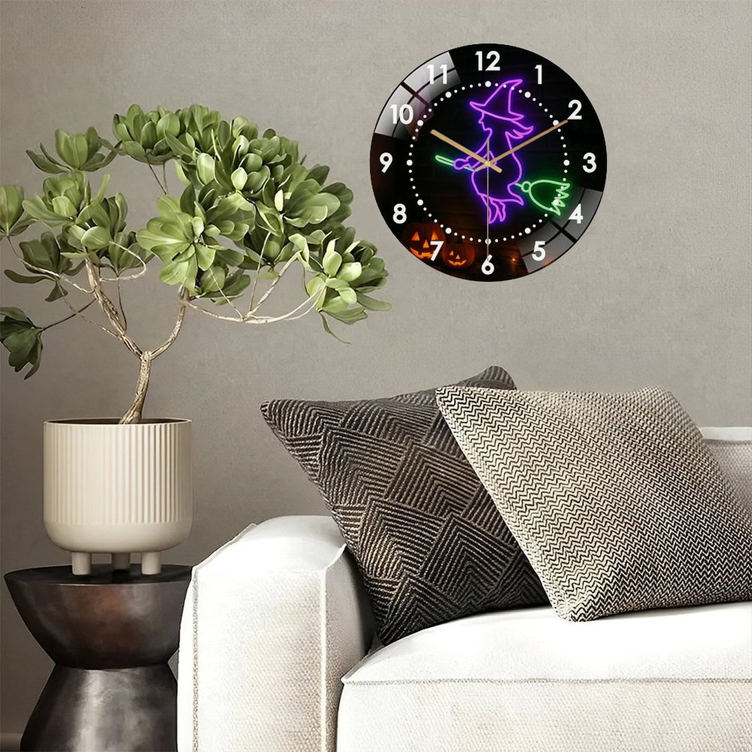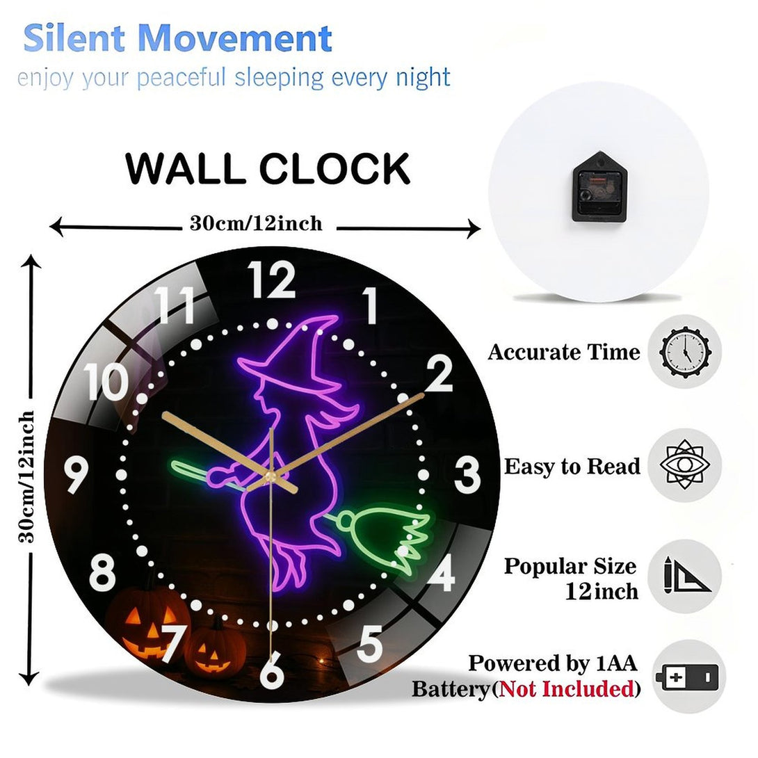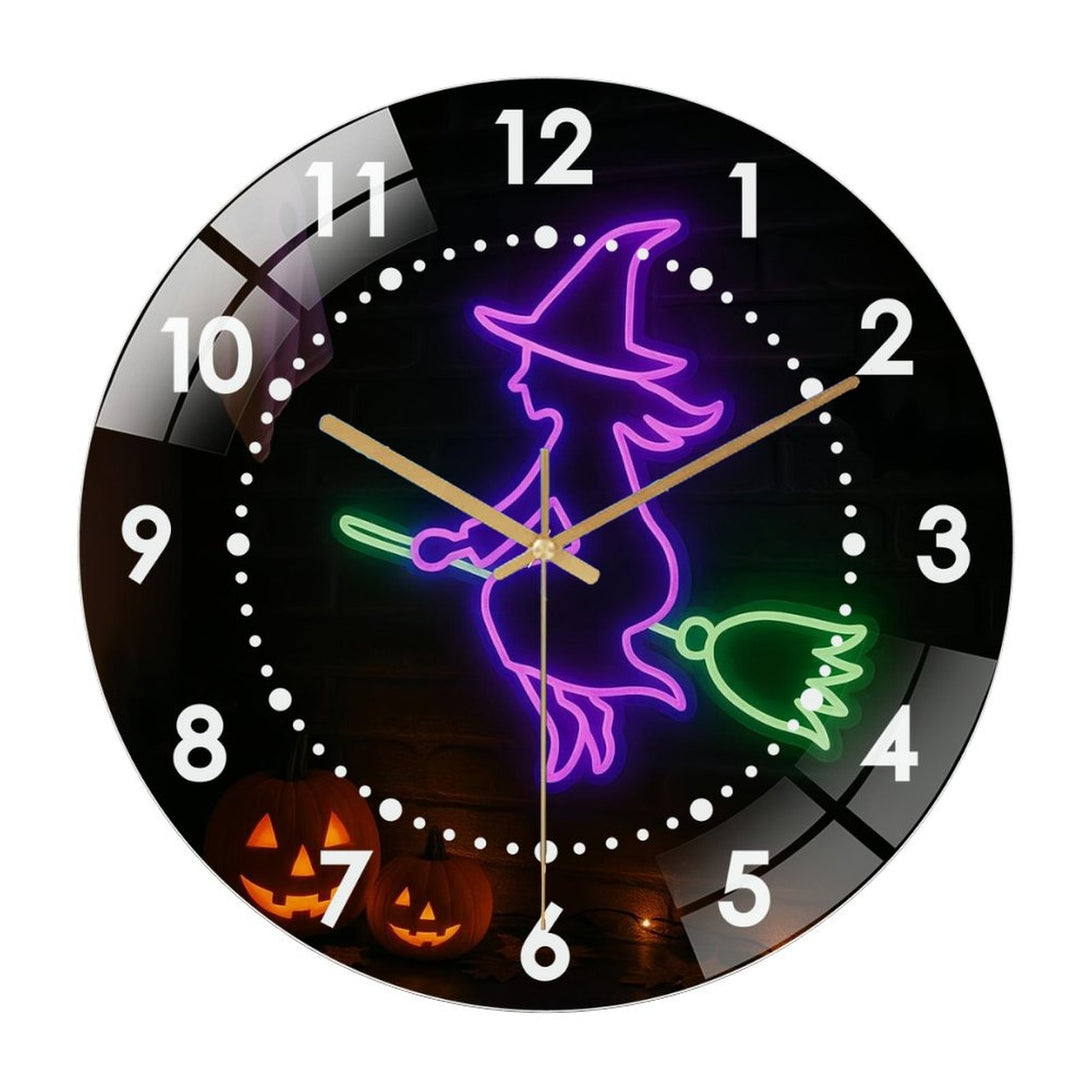 Happy Hallo-ween Party Glass Wall Clock,Trick Or Treat Decor Wall Clock for Home Decor Hallo-ween Gho St Boo Haunted House Party Wall Art.homes, Bars, Offices, Man Caves, Garages, And Living Rooms,12×12inch(30×30cm)