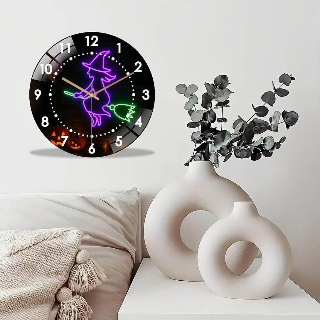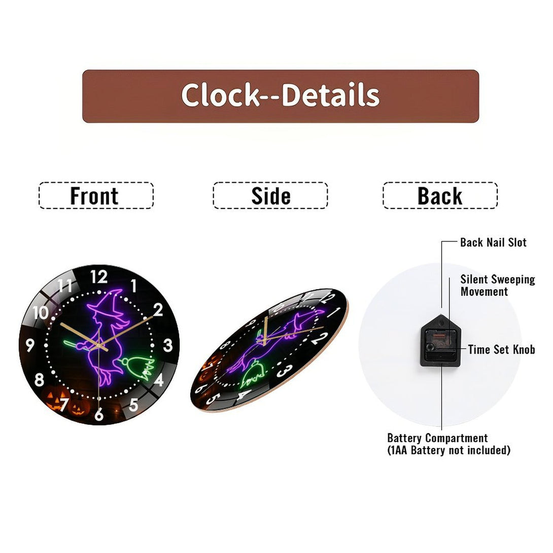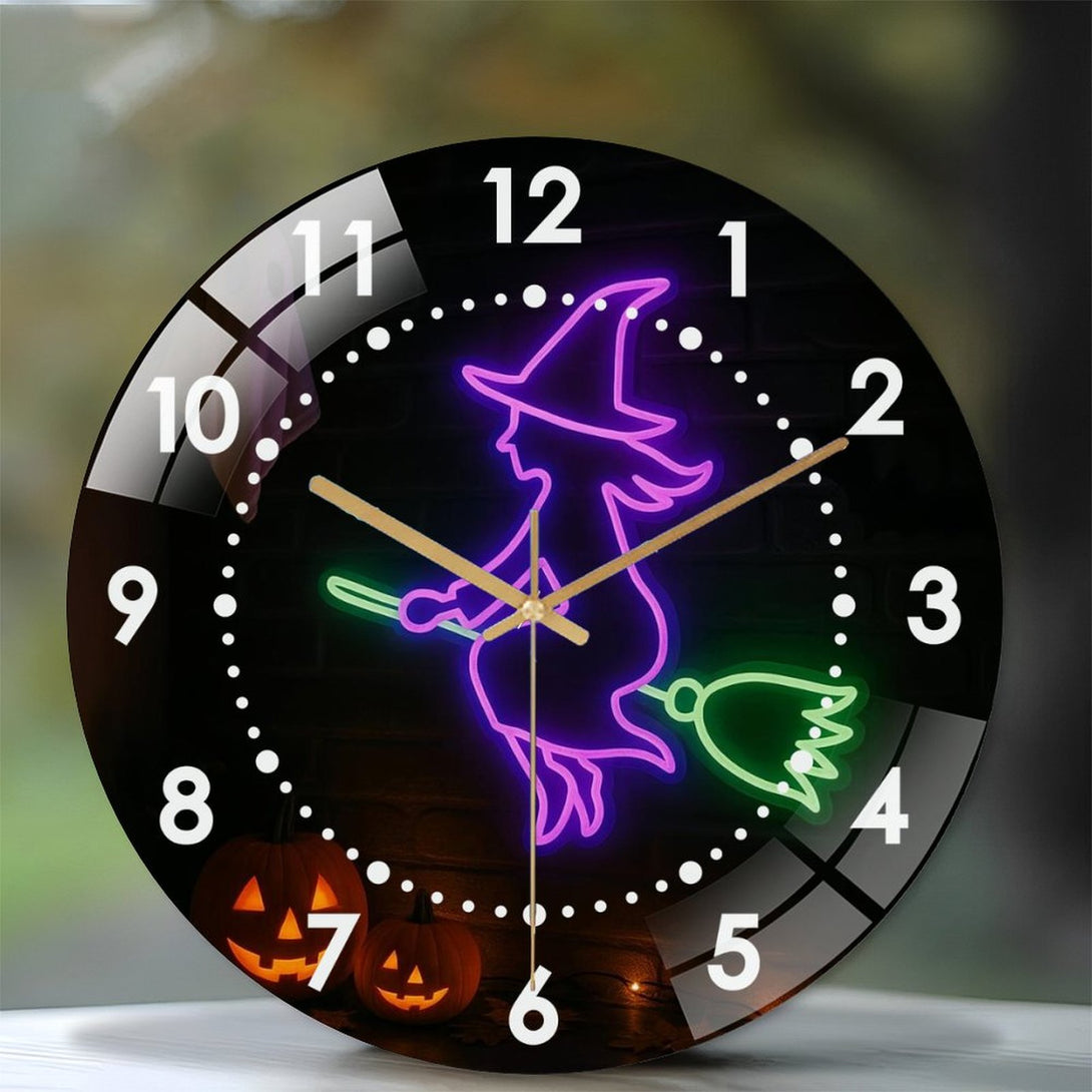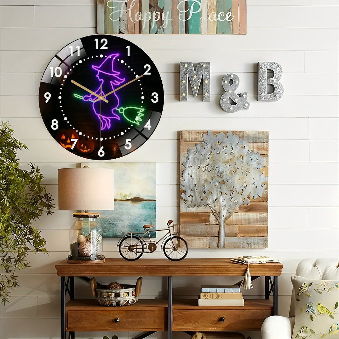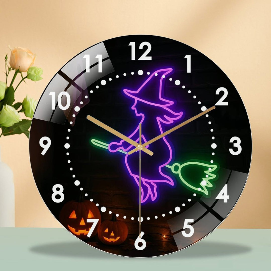 Decor Wall Clock: Happy Hallo-ween Party Glass Wall Clock,Trick Or Treat Decor Wall Clock for Home Decor Hallo-ween Gho St Boo Haunted House Party Wall Art.homes, Bars, Offices
