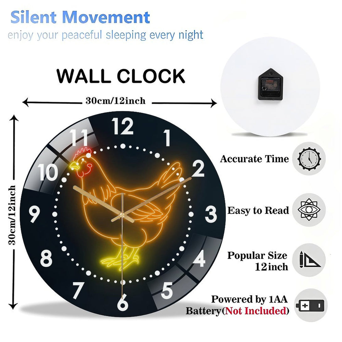 Hen Chicken Glass Wall Clock ,Chicken Animal Special Gift Wall Clock for Home Decor, Christmas Gift for Bedroom, Game Room, Man Cave, Party Decor .,12×12inch(30×30cm)