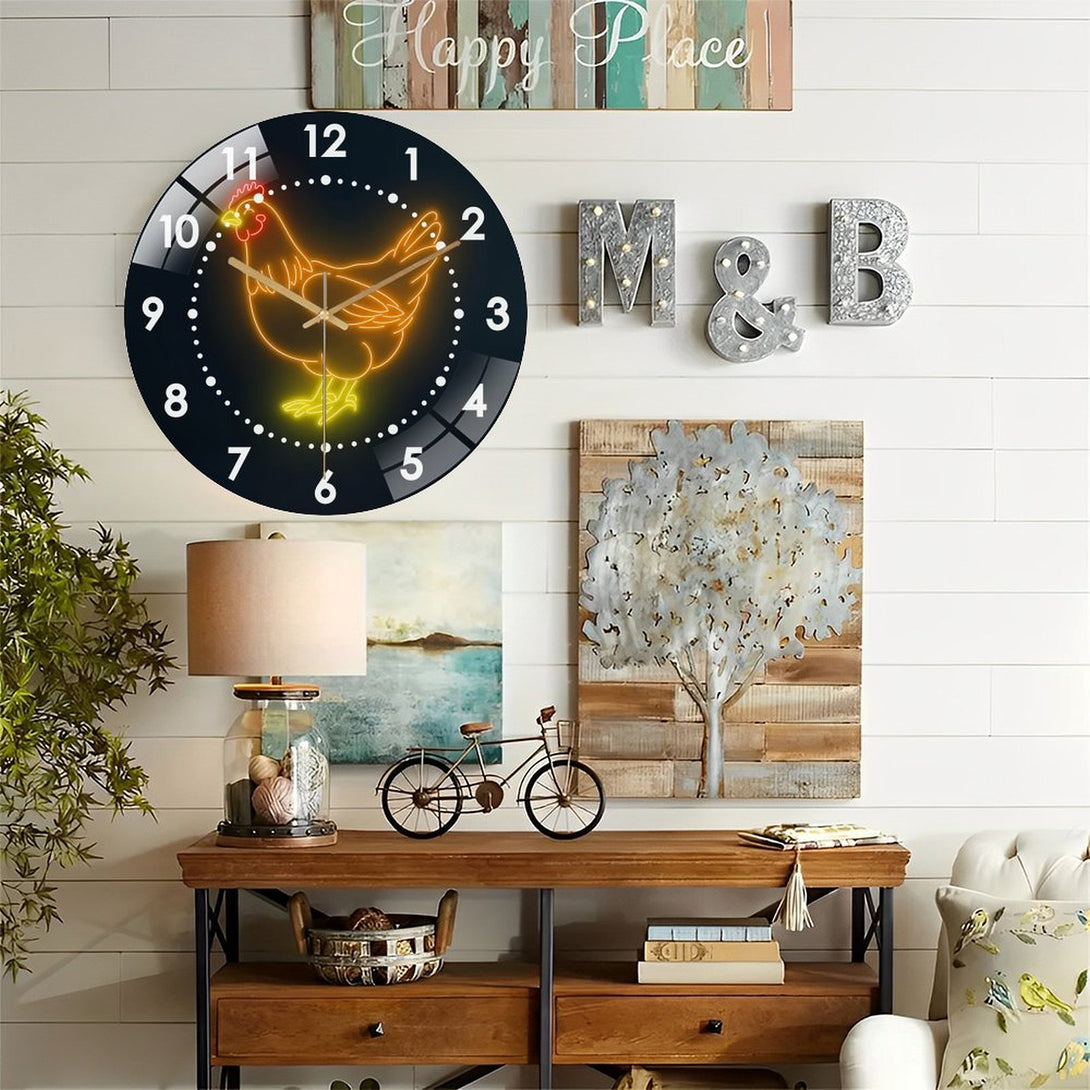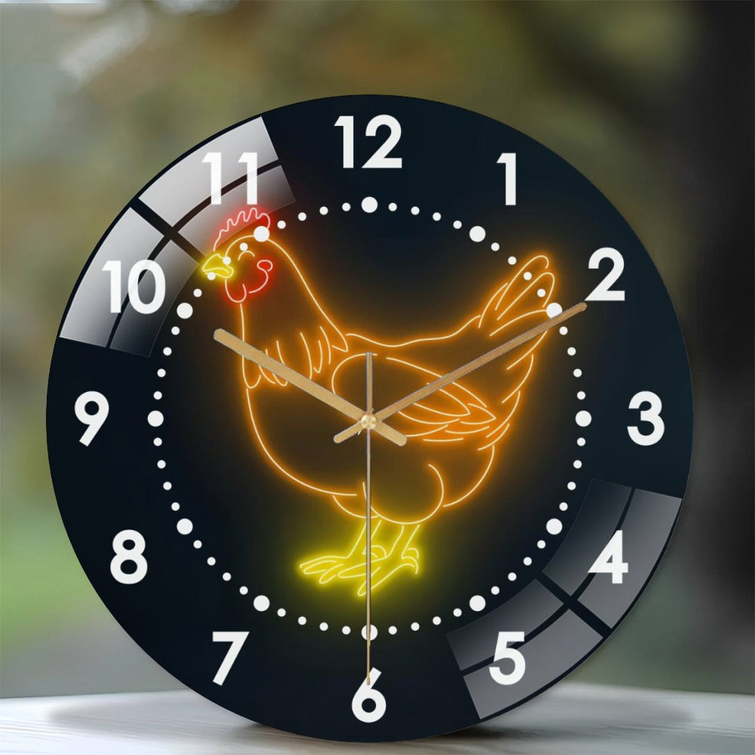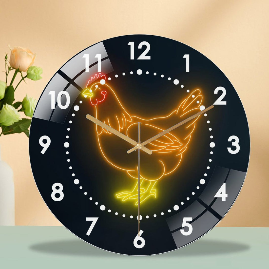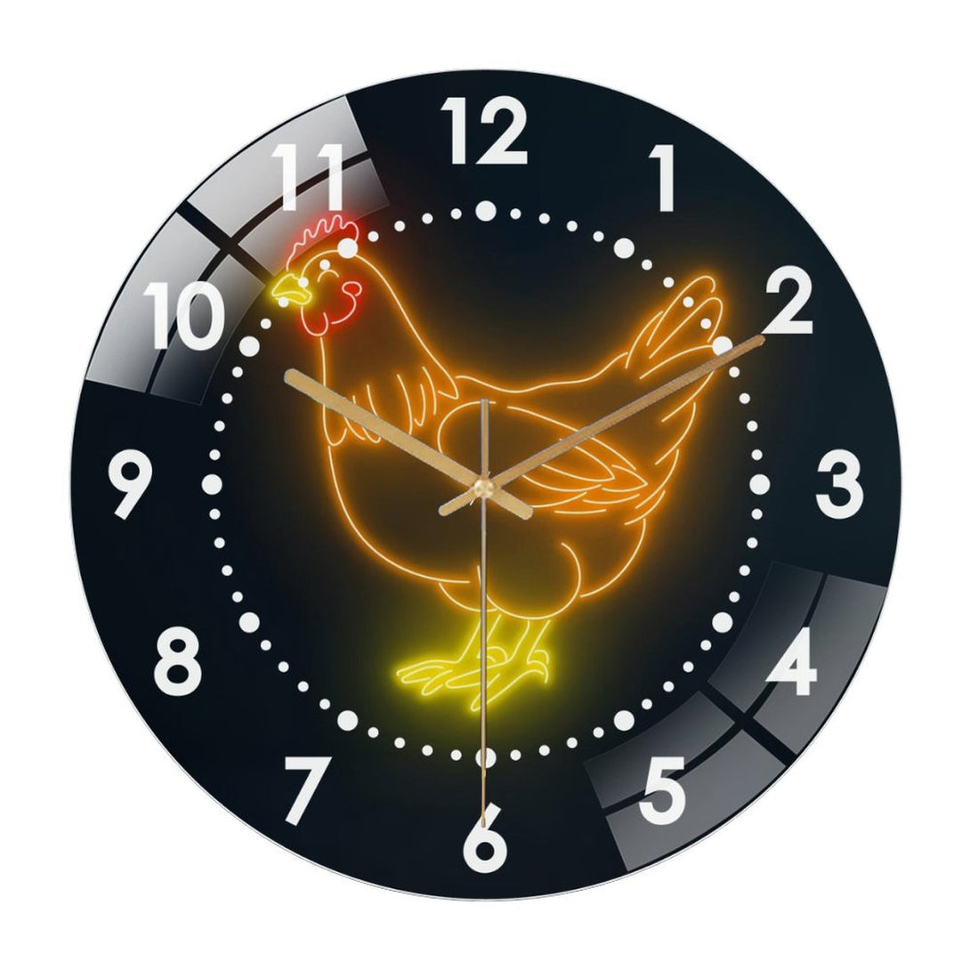 Decor Wall Clock: Hen Chicken Glass Wall Clock ,Chicken Animal Special Gift Wall Clock for Home Decor, Christmas Gift for Bedroom, Game Room, Man Cave, Party Decor . Style 12×12inch(30×30cm)