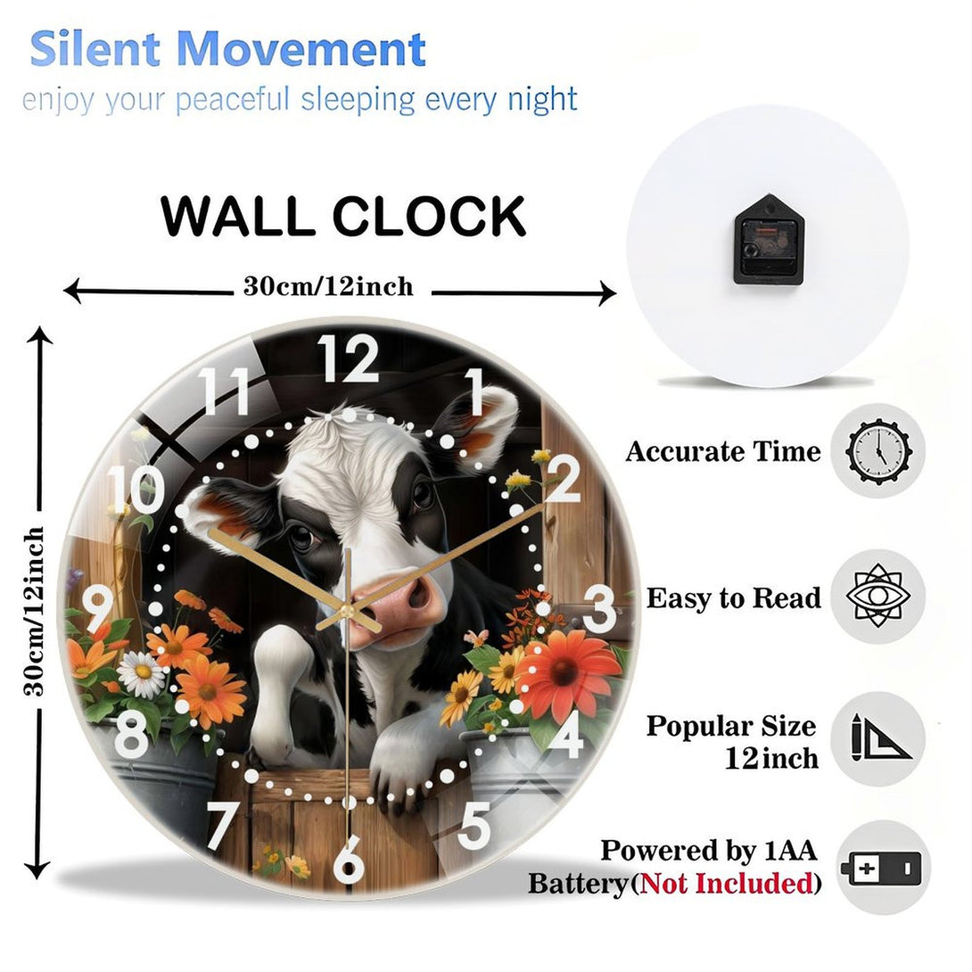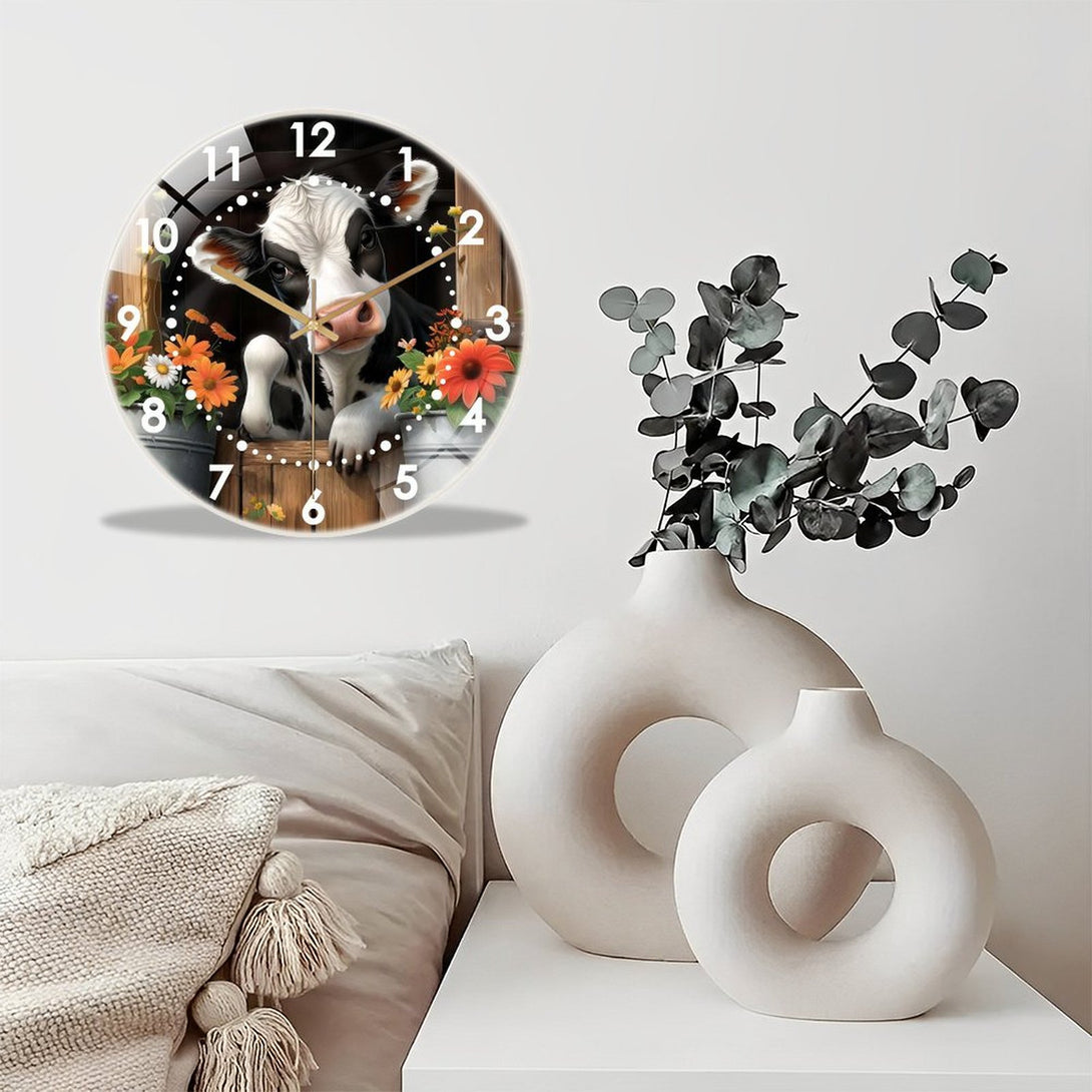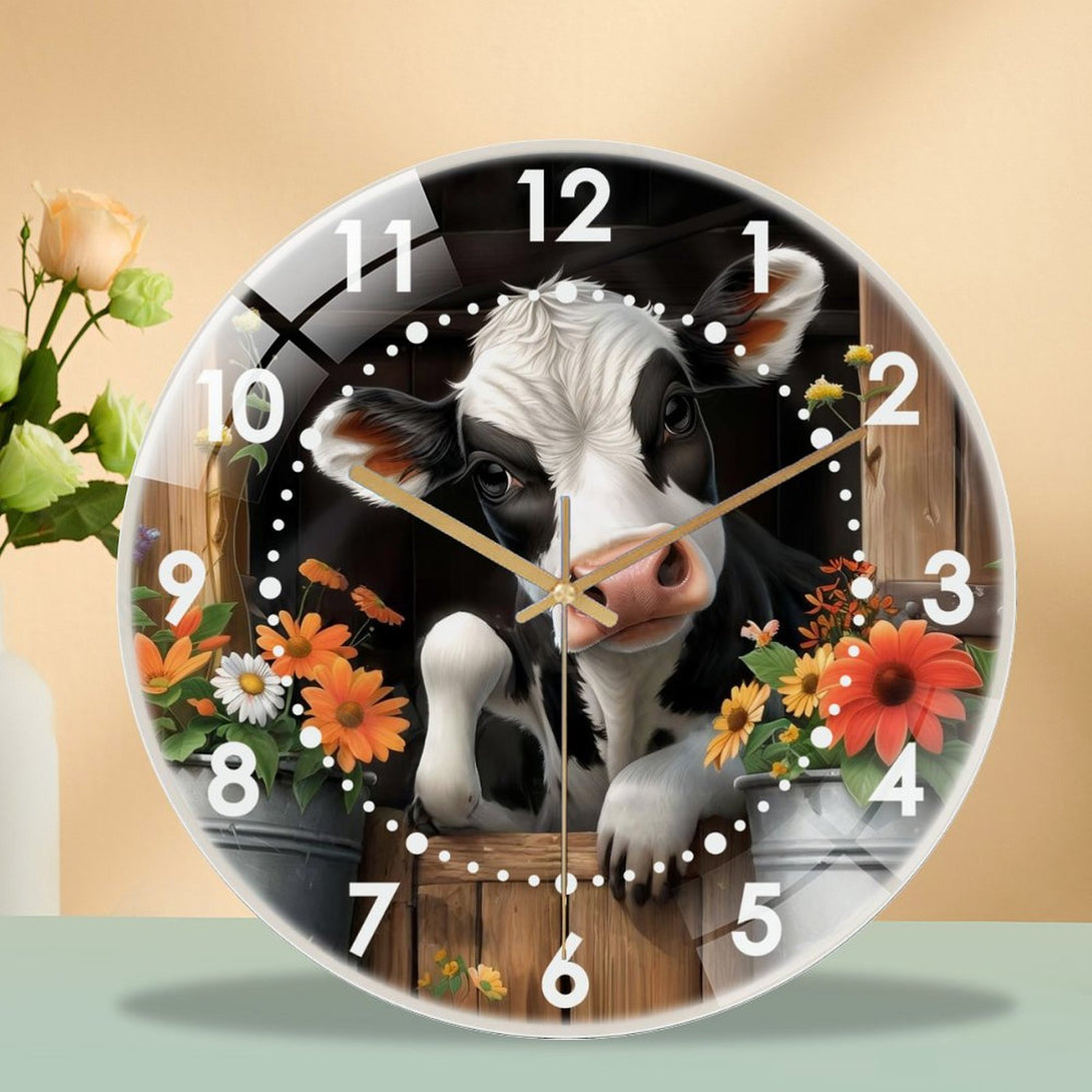 Holstein Cow Glass Wall Clock, Cow Decor Wall Clock for Homes, Bars, Offices, Man Caves, Garages, And Living Rooms .Also Makes A Great Gift.,12×12inch(30×30cm)