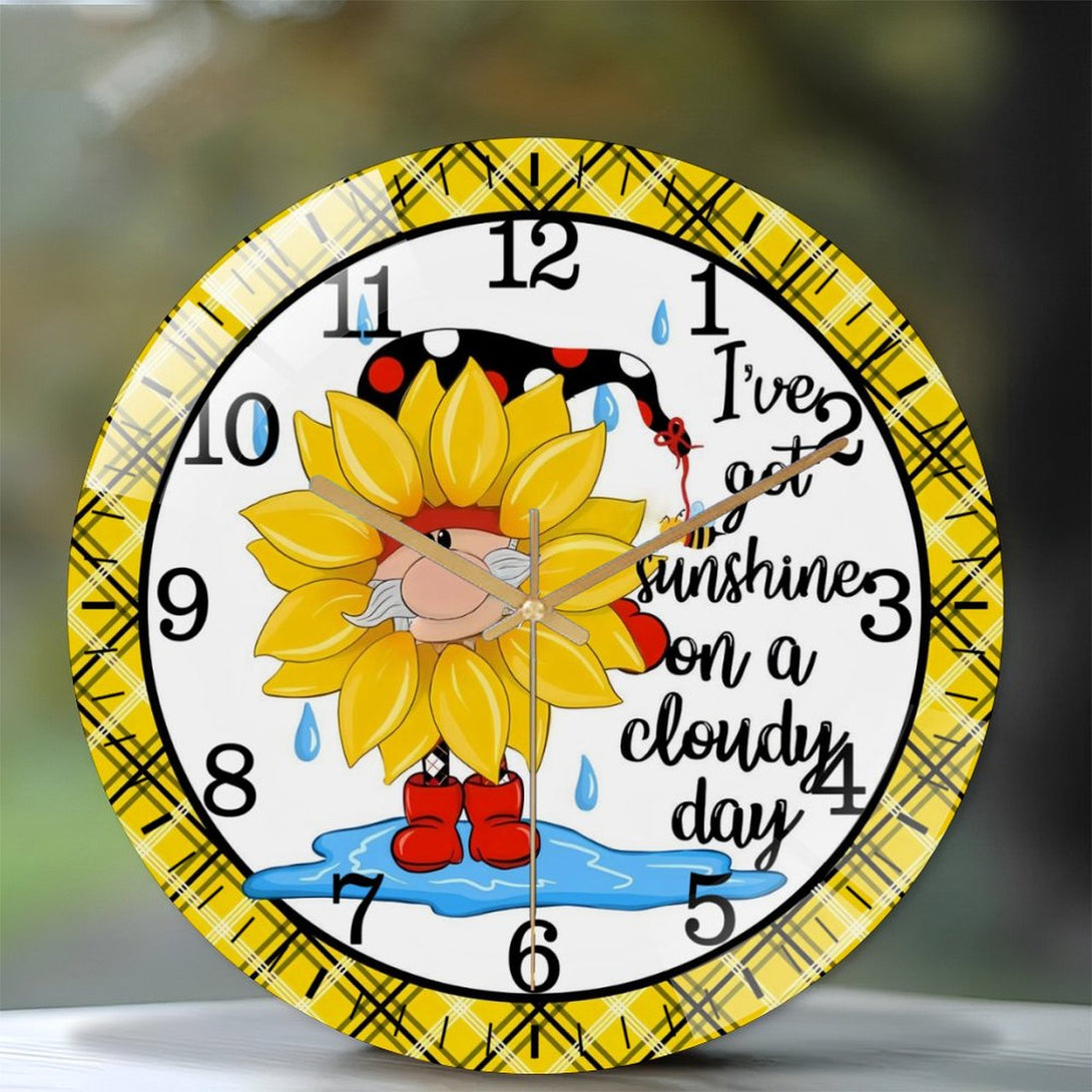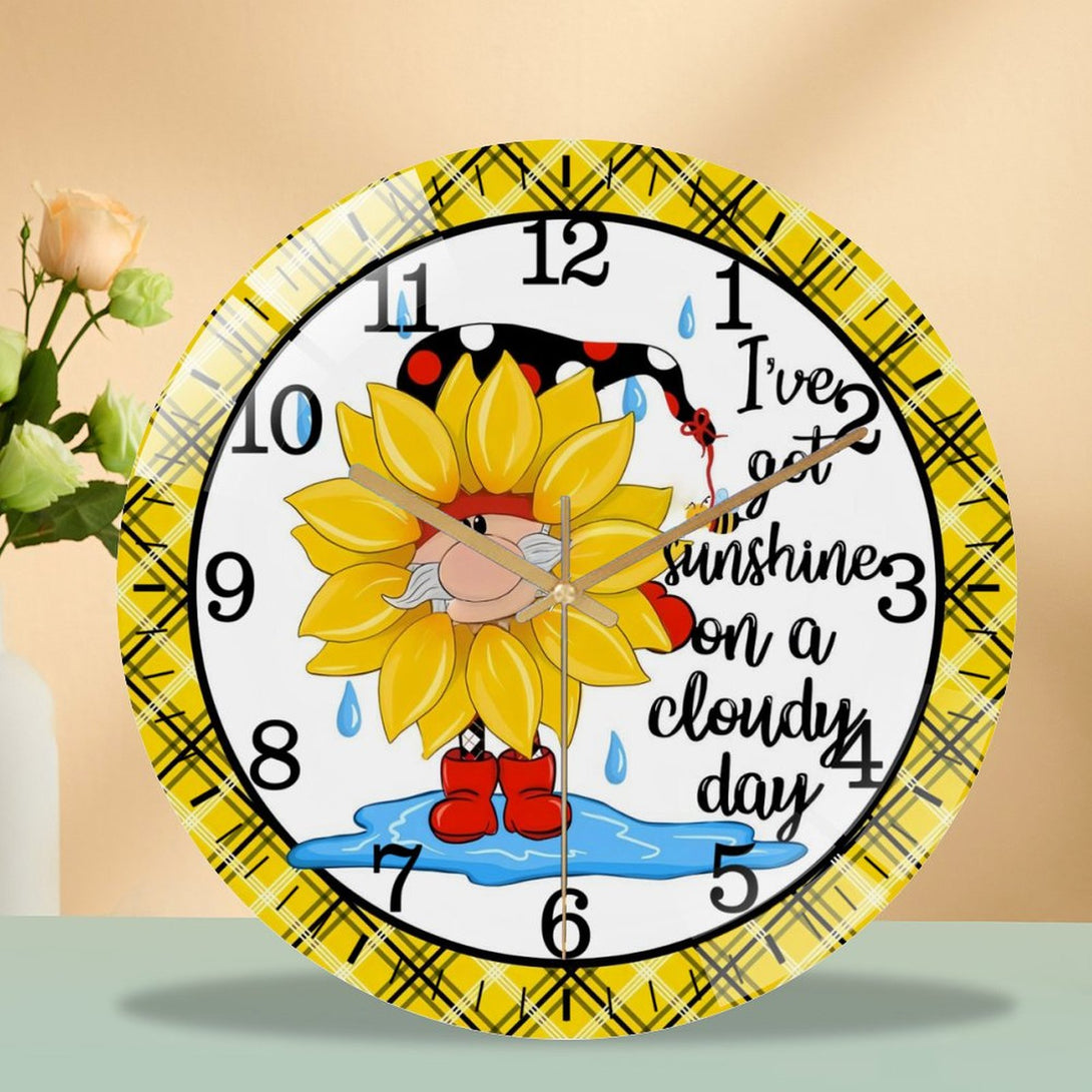 Decor Wall Clock: I've Got Sunshine on A Cloudy Day Glass Wall Clock,Sunflower Spring Decor Wall Clock for Homes, Bars, Offices, Man Caves, Garages, And Living Rooms .Also Makes A Great Gift.