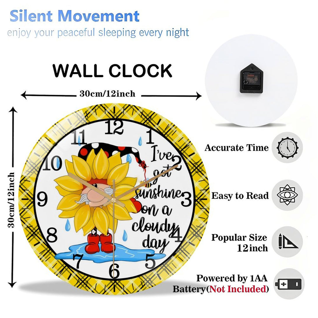I've Got Sunshine on A Cloudy Day Glass Wall Clock,Sunflower Spring Decor Wall Clock for Homes, Bars, Offices, Man Caves, Garages, And Living Rooms .Also Makes A Great Gift.,12×12inch(30×30cm)