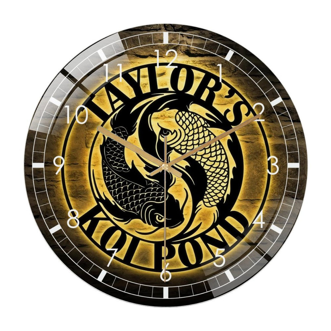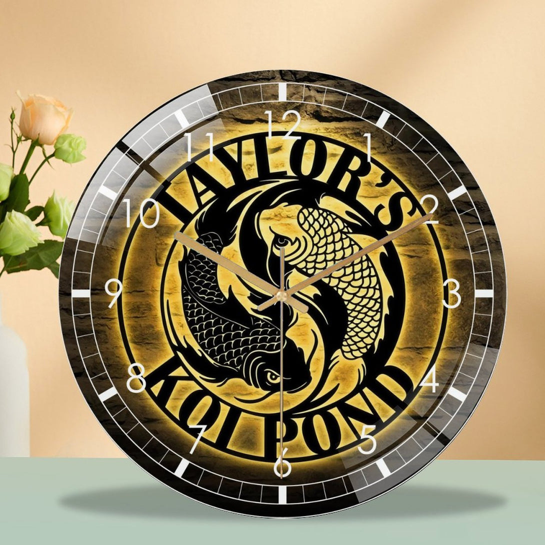 Koi Pond Glass Wall Clock,Koi Fish Wall Art Decor Wall Clock for Homes, Bars, Offices, Man Caves, Garages, And Living Rooms .Also Makes A Great Gift.Gift for Fish Lover,12×12inch(30×30cm)