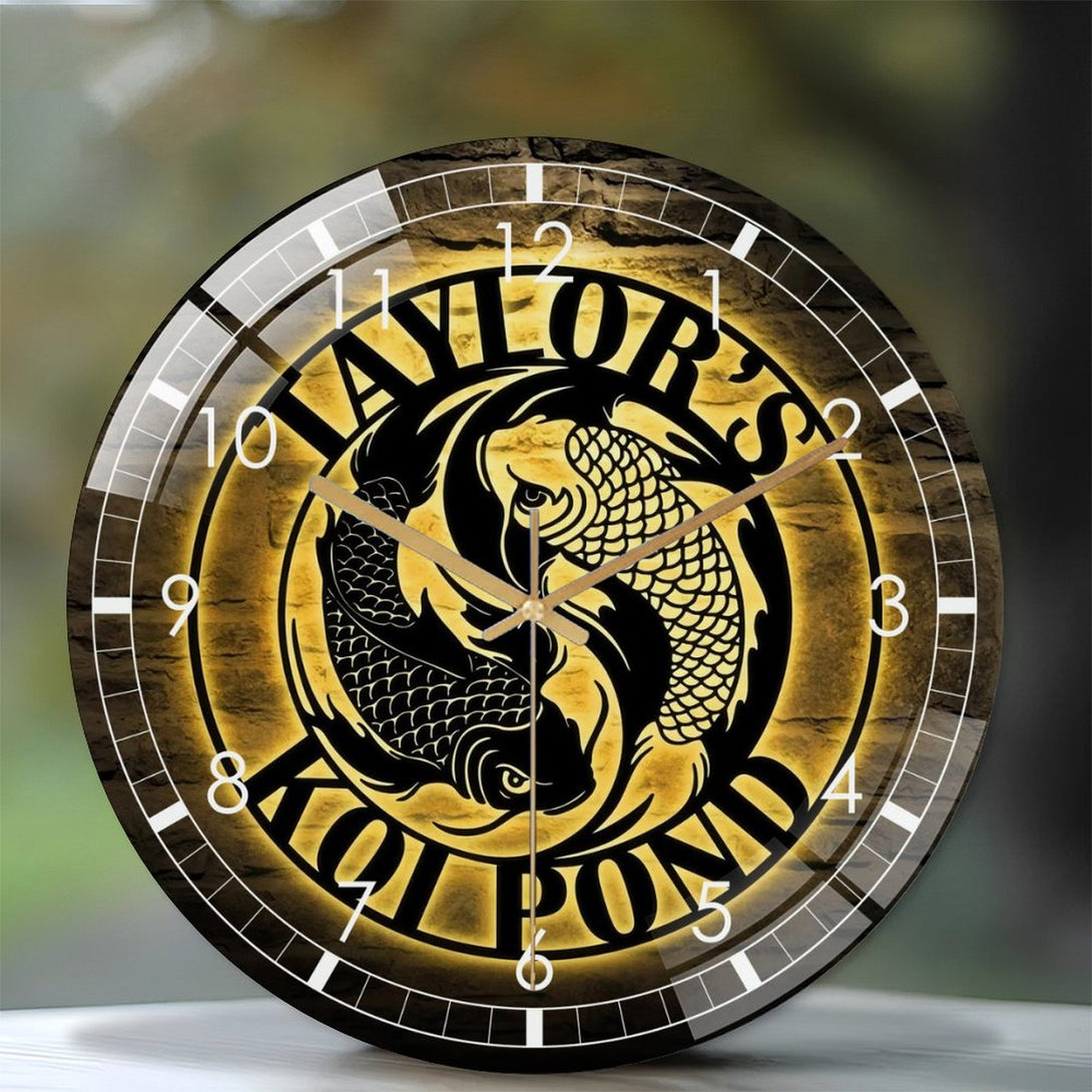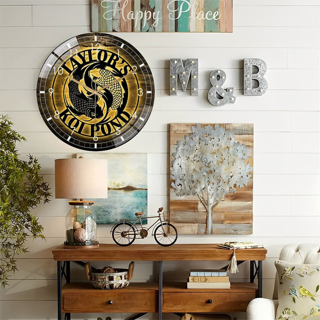 Decor Wall Clock: Koi Pond Glass Wall Clock,Koi Fish Wall Art Decor Wall Clock for Homes, Bars, Offices, Man Caves, Garages, And Living Rooms .Also Makes A Great Gift.Gift for Fish Lover