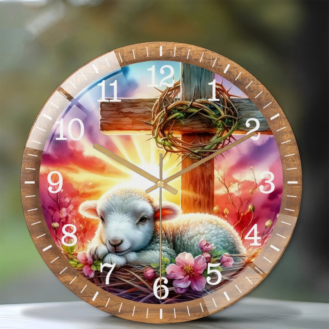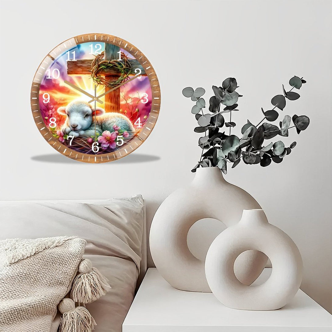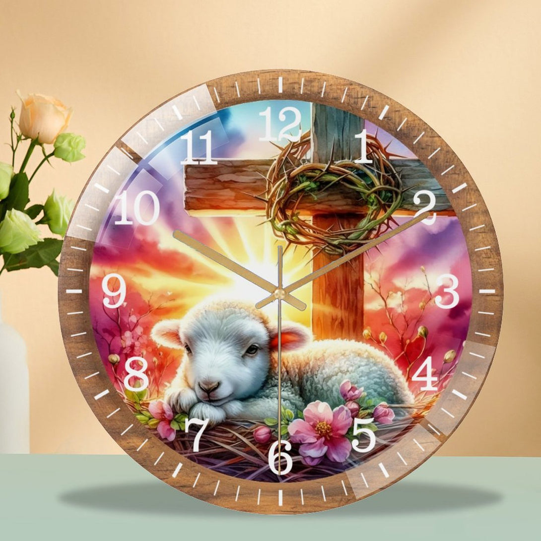Decor Wall Clock: Lamb at The Cross Easter Glass Wall Clock, Easter Christian Home Decor Wall Clock for Homes, Bars, Offices, Man Caves, Garages, And Living Rooms .