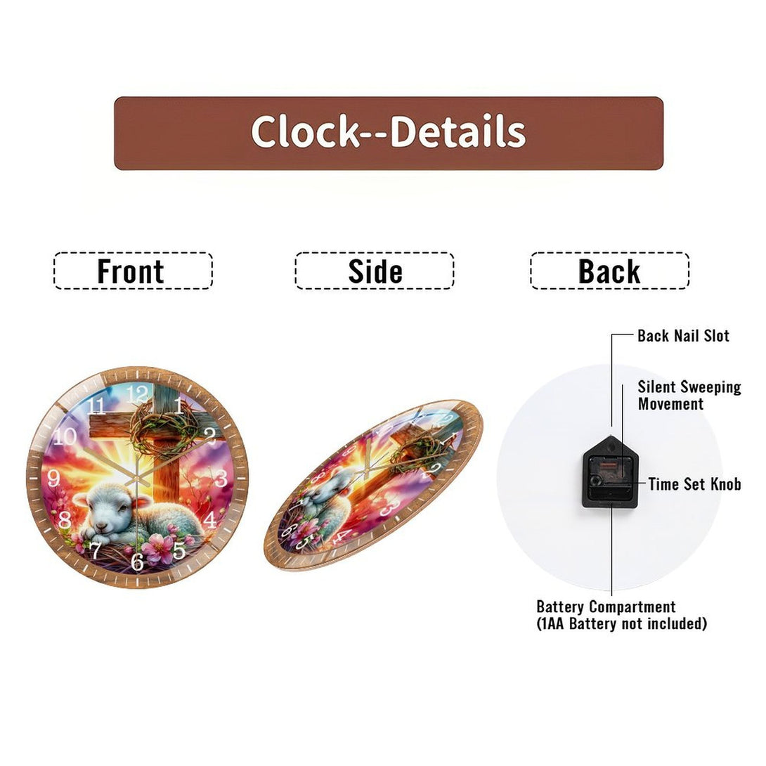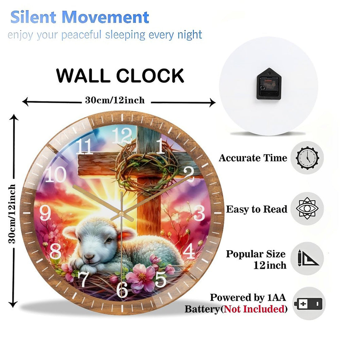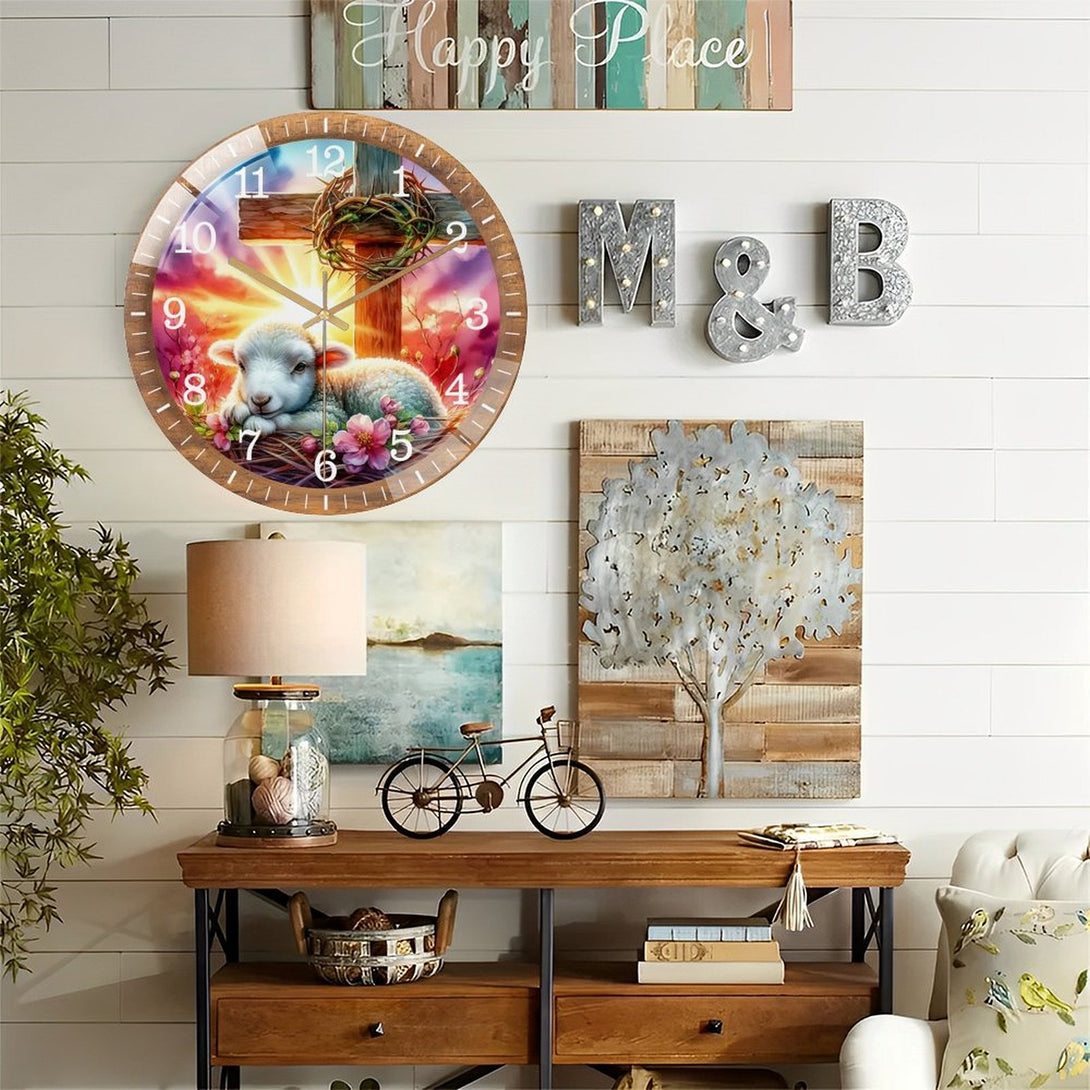 Decor Wall Clock: Lamb at The Cross Easter Glass Wall Clock, Easter Christian Home Decor Wall Clock for Homes, Bars, Offices, Man Caves, Garages, And Living Rooms .