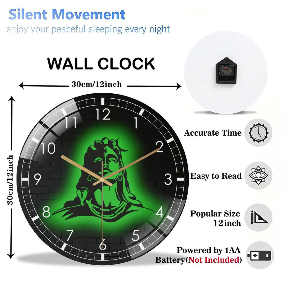 Lord ShivaGlass Wall Clock ,Spiritual Hindu Wall Art Glass Wall Clock, Meditation Room Accent, Indian God Decor for Temple Or Home,12×12inch(30×30cm)