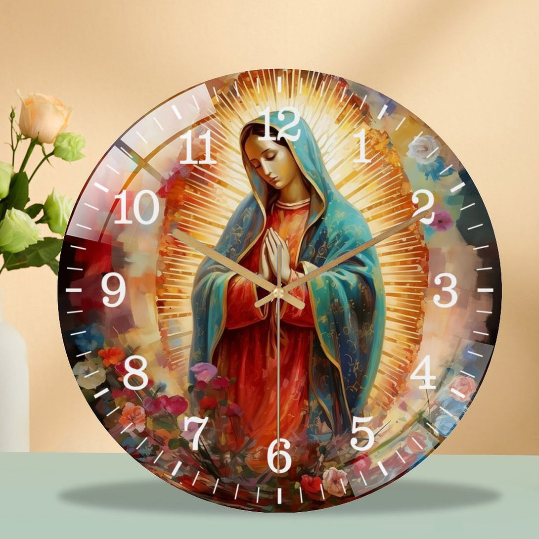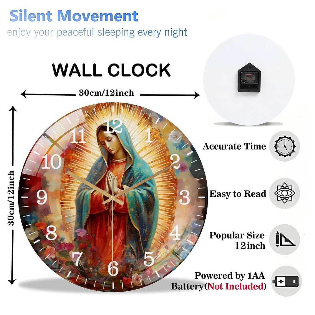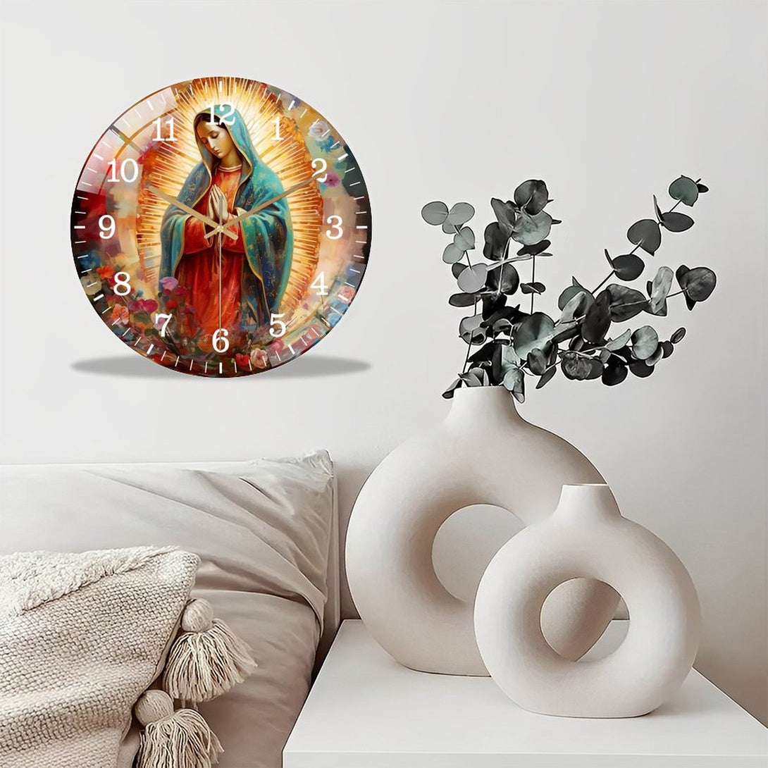 Mary Christmas Glass Wall Clock, Christmas Decor Wall Clock for Homes, Bars, Offices, Man Caves, Garages, And Living Rooms .Also Makes A Great Gift.,12×12inch(30×30cm)
