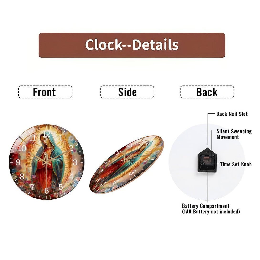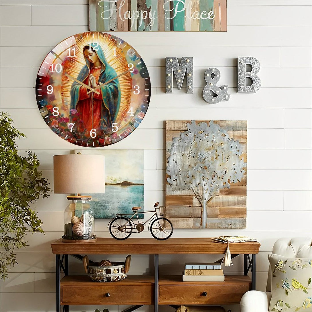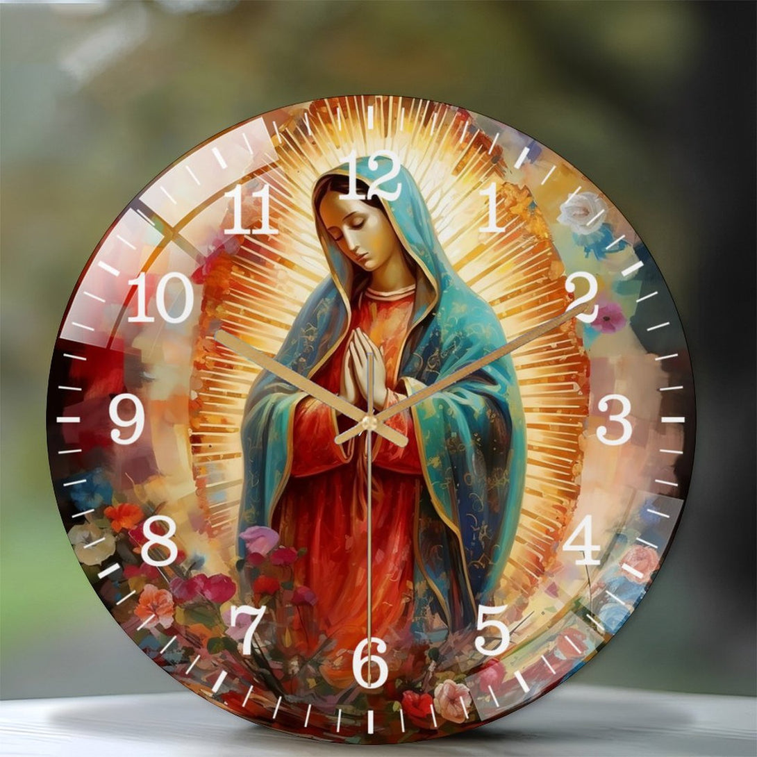 Mary Christmas Glass Wall Clock, Christmas Decor Wall Clock for Homes, Bars, Offices, Man Caves, Garages, And Living Rooms .Also Makes A Great Gift.,12×12inch(30×30cm)