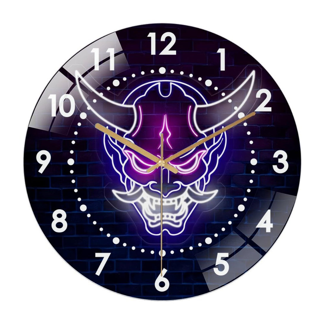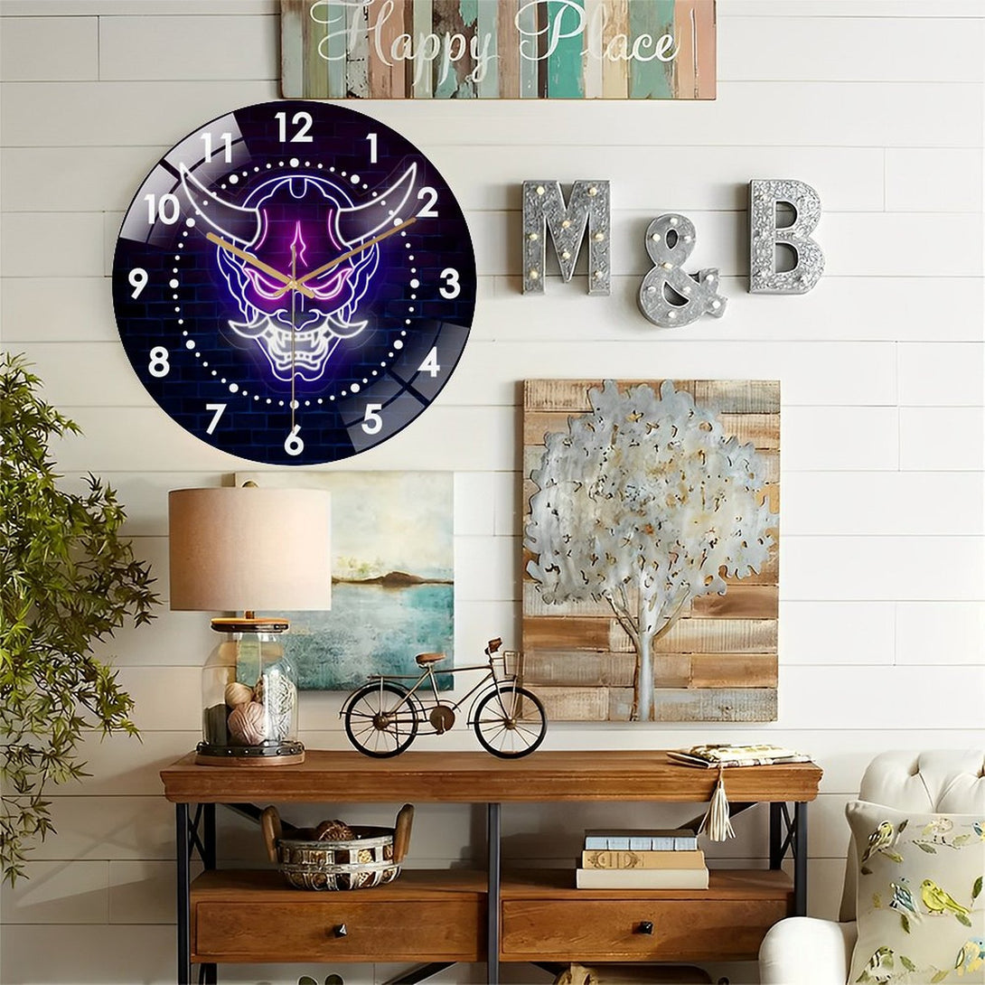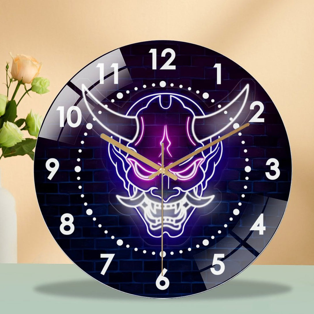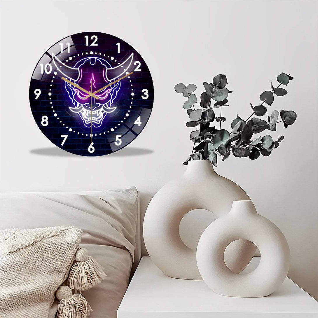Oni Mas K Glass Wall Clock– Japanese Hannya Demon Mask Wall Clock for Haunted House & Party Decor for Homes, Bars, Offices, Man Caves, Garages, And Living Rooms .esthetic Gifts for Home Or Room,12×12inch(30×30cm)