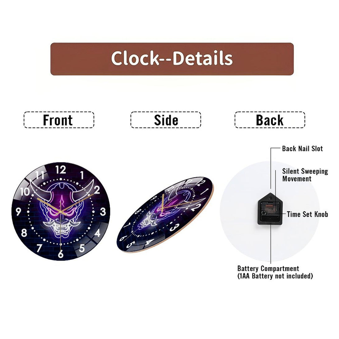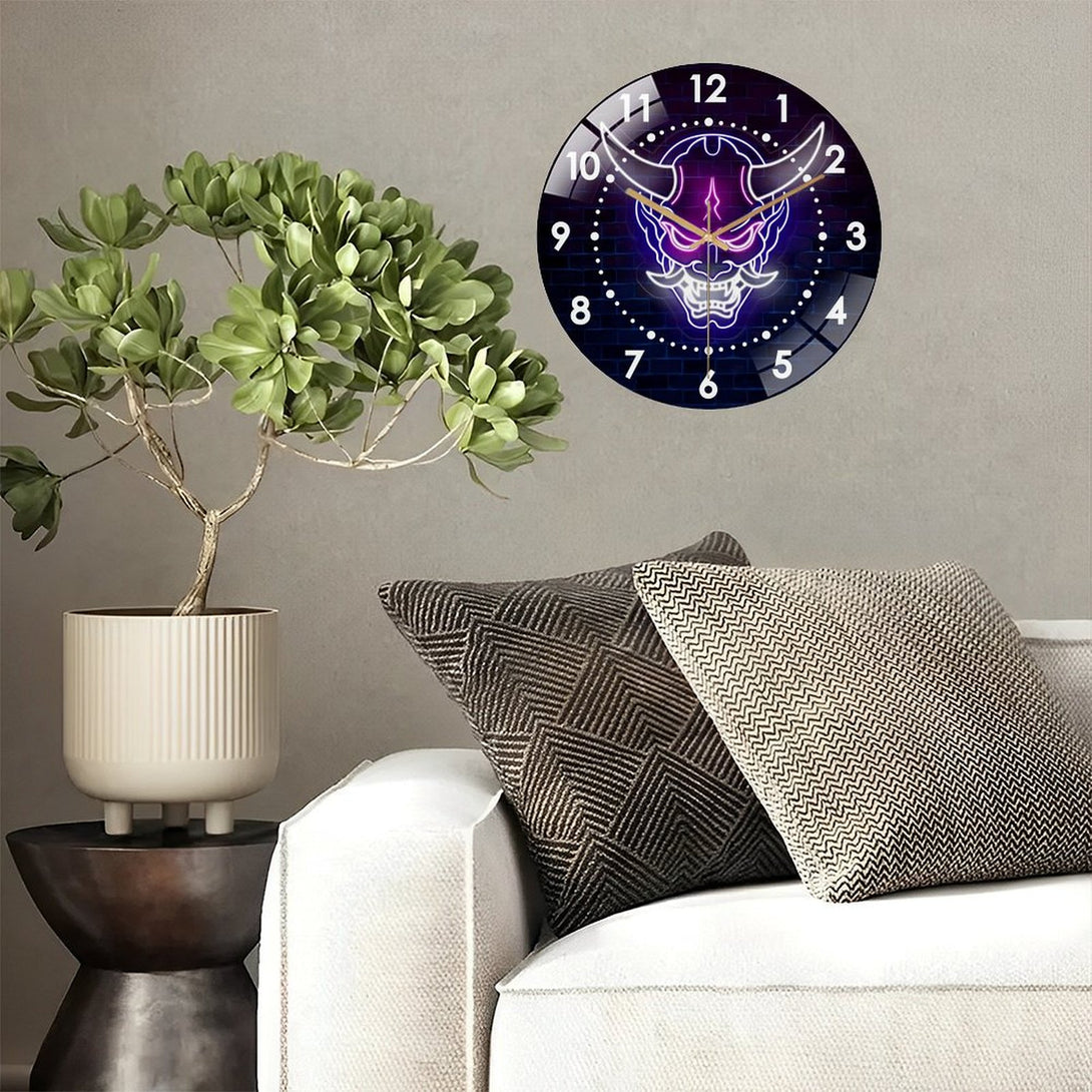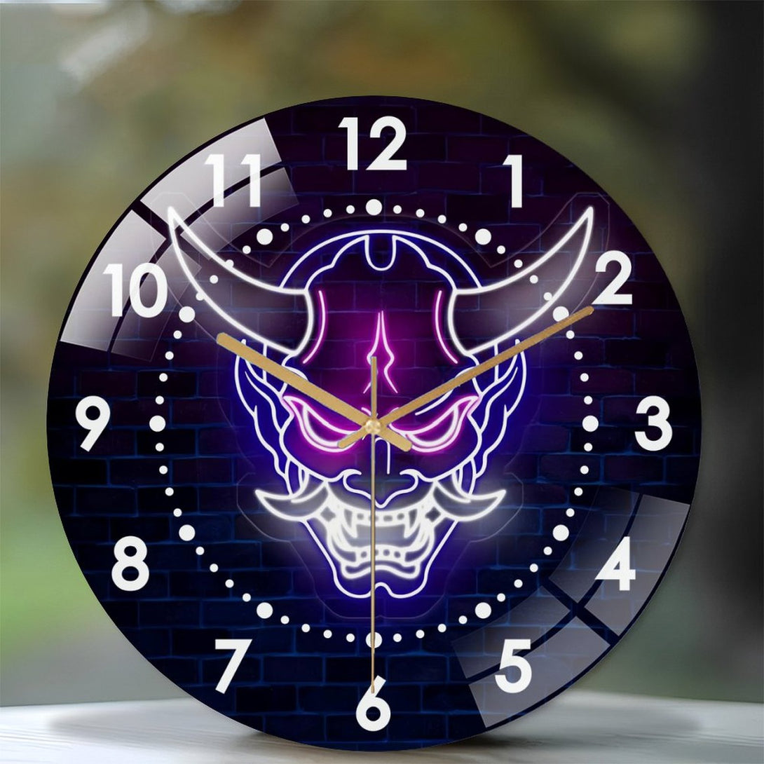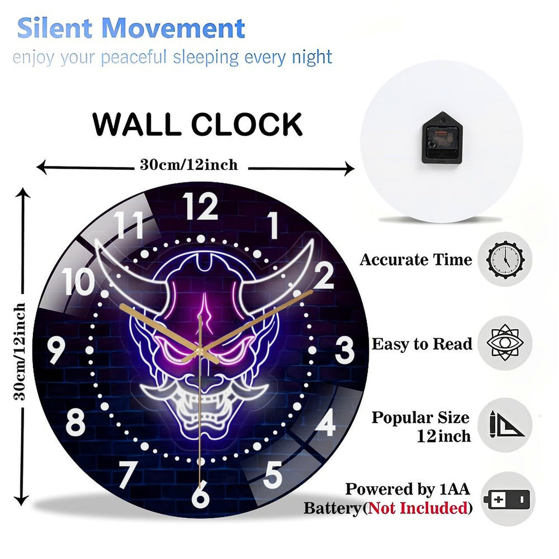 Oni Mas K Glass Wall Clock– Japanese Hannya Demon Mask Wall Clock for Haunted House & Party Decor for Homes, Bars, Offices, Man Caves, Garages, And Living Rooms .esthetic Gifts for Home Or Room,12×12inch(30×30cm)