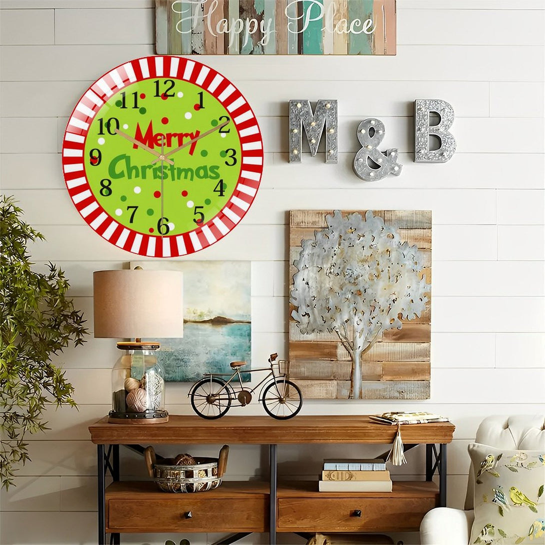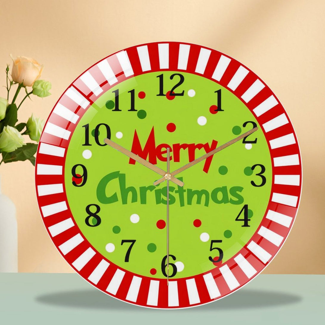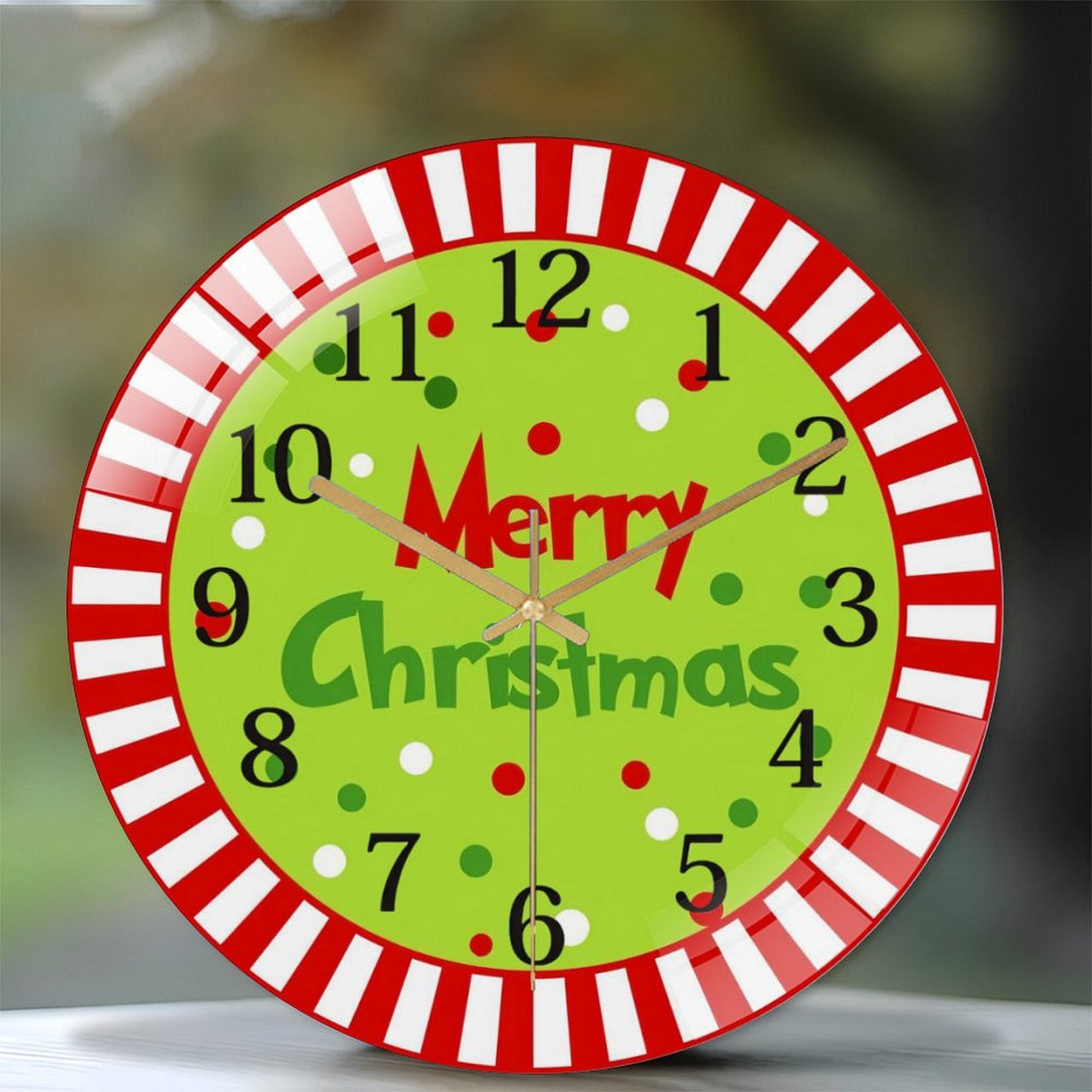 Decor Wall Clock: Red And Green Merry Christmas Glass Wall Clock,Merry Christmas Decor Wall Clock for Homes, Bars, Offices, Man Caves, Garages, And Living Rooms .Also Makes A Great Gift.