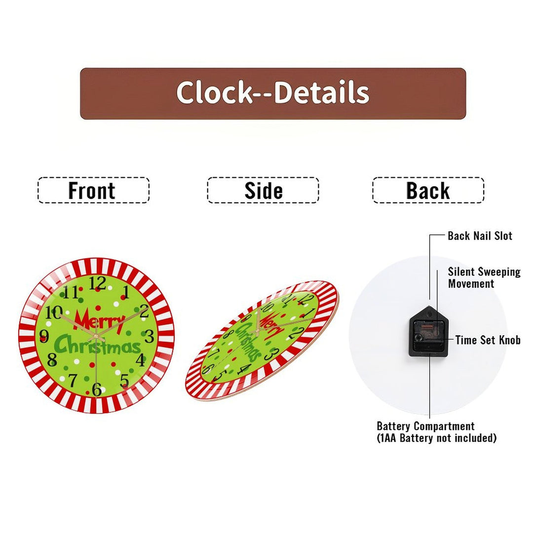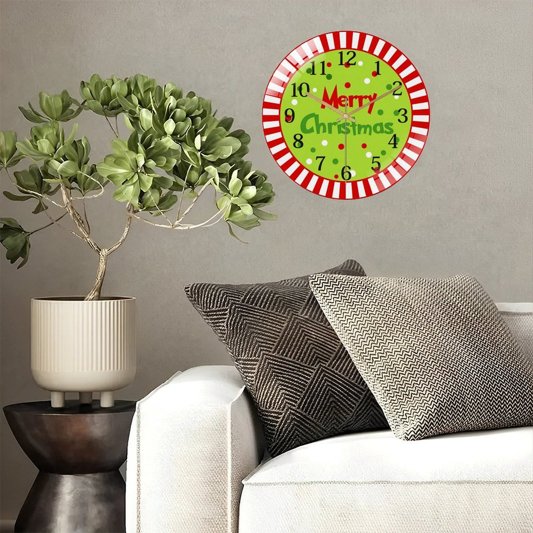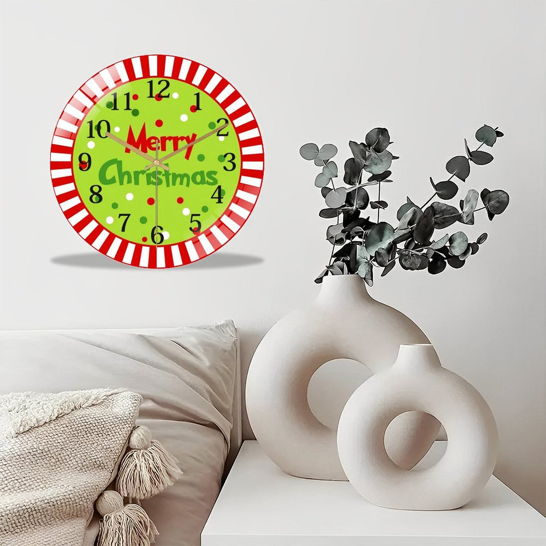 Decor Wall Clock: Red And Green Merry Christmas Glass Wall Clock,Merry Christmas Decor Wall Clock for Homes, Bars, Offices, Man Caves, Garages, And Living Rooms .Also Makes A Great Gift.