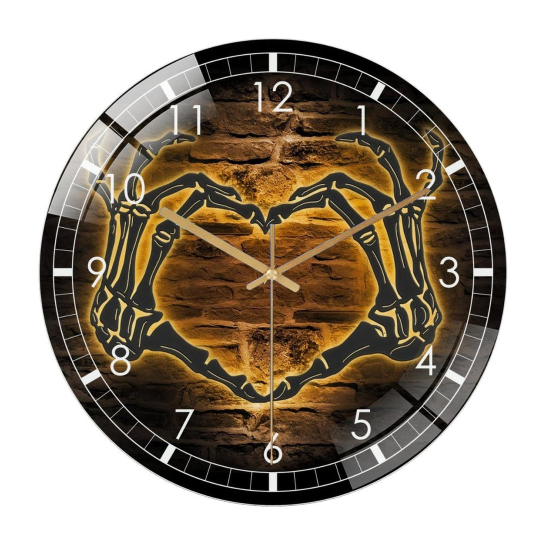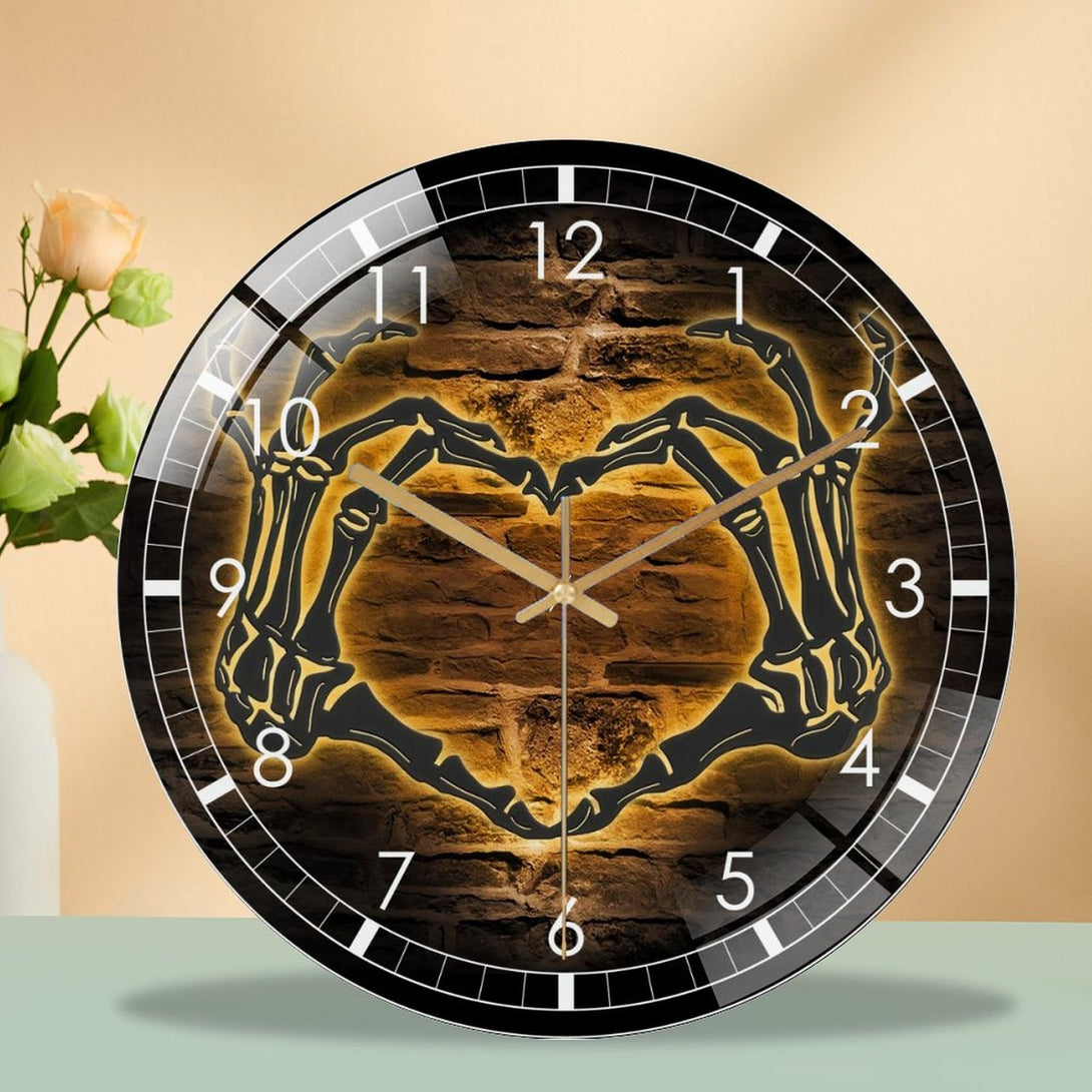 Skeleton Hand Heart Glass Wall Clock,Heart Infinity Decor Wall Clock for Home Decor Couple Hallo-ween Love Decoration Heart Skeleton Hand Hallo-ween。homes, Bars, Offices, Man Caves, Garages, And Liv,12×12inch(30×30cm)