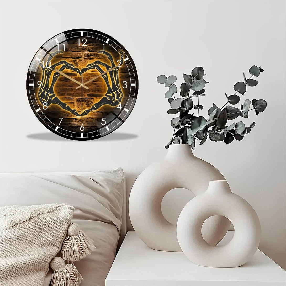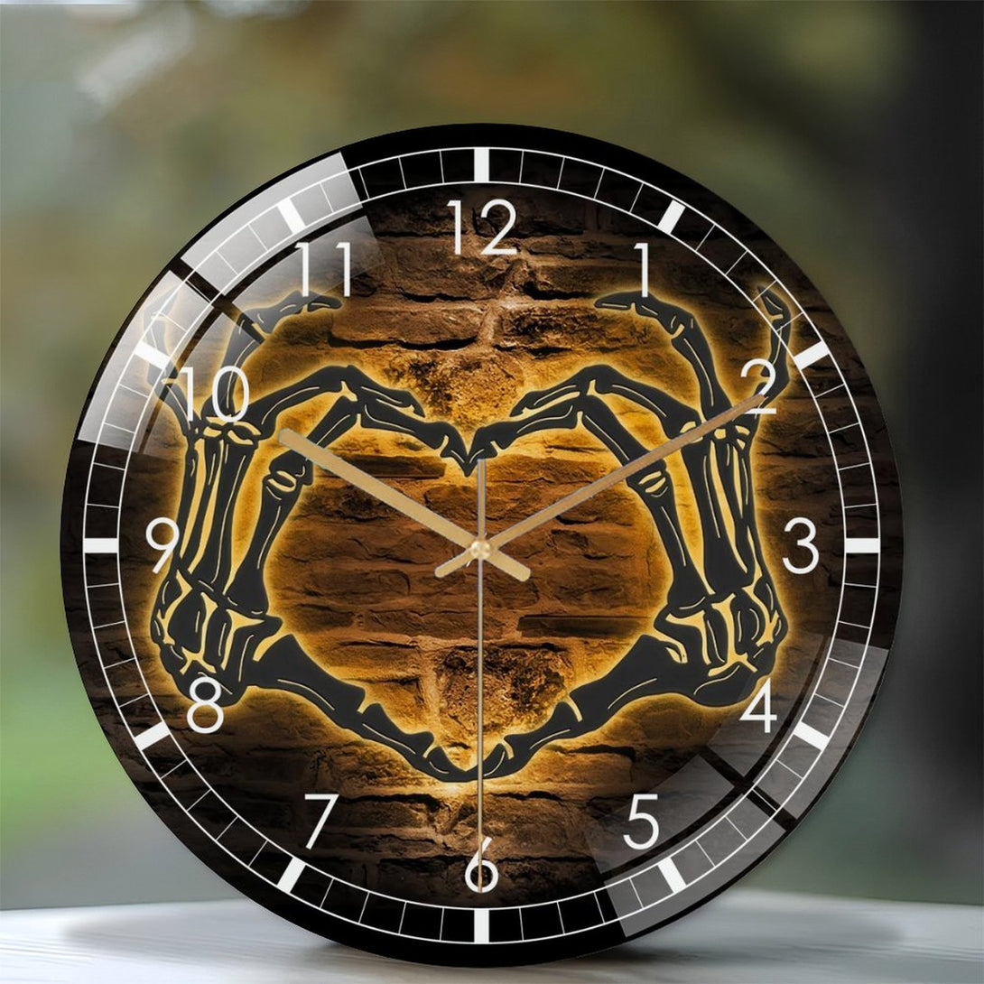 Decor Wall Clock: Skeleton Hand Heart Glass Wall Clock,Heart Infinity Decor Wall Clock for Home Decor Couple Hallo-ween Love Decoration Heart Skeleton Hand Hallo-ween。homes, Bars, Offices, Man Caves,