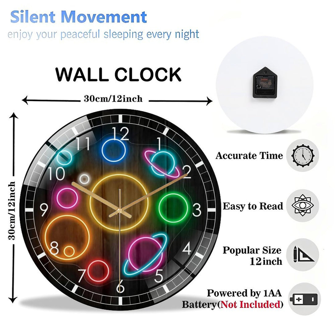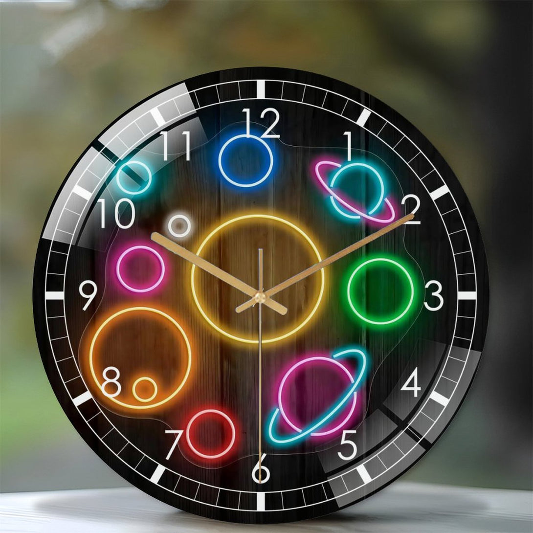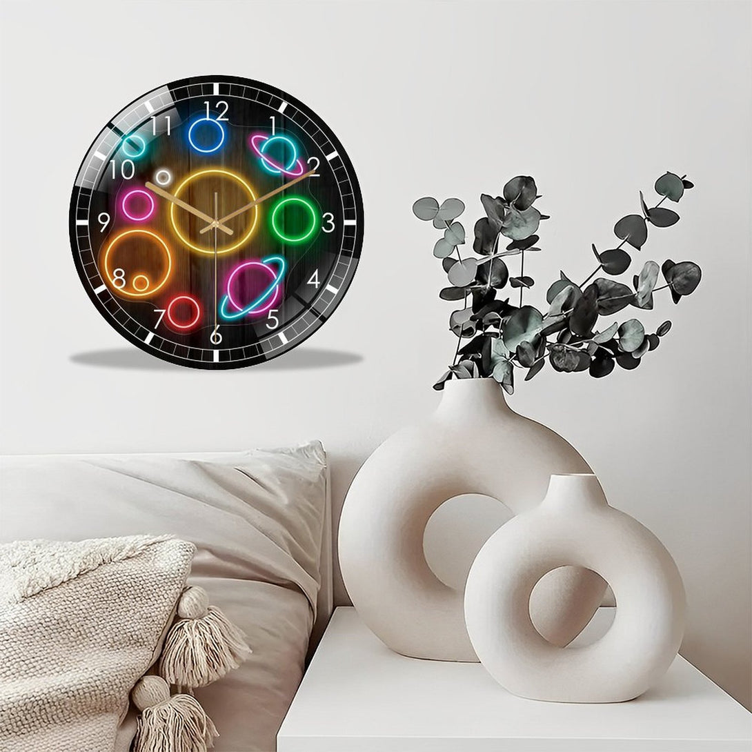 Space Planets Light Up Sign Glass Wall Clock – Bedroom Wall Art Wall Clock for Home Decor, Kids Room Decor, Space Wall Art, Christmas Gift for Home, Cosmos,12×12inch(30×30cm)