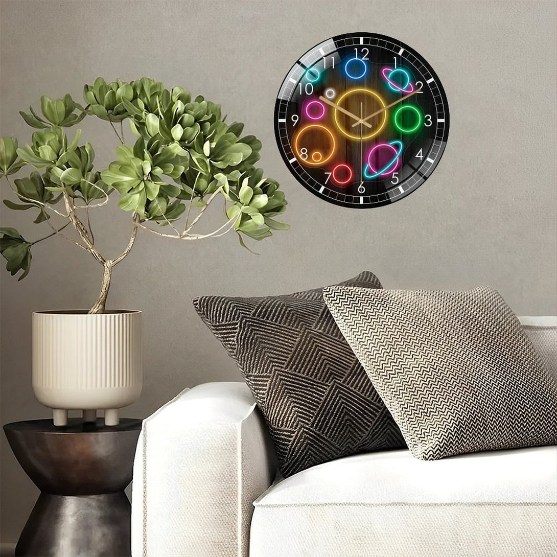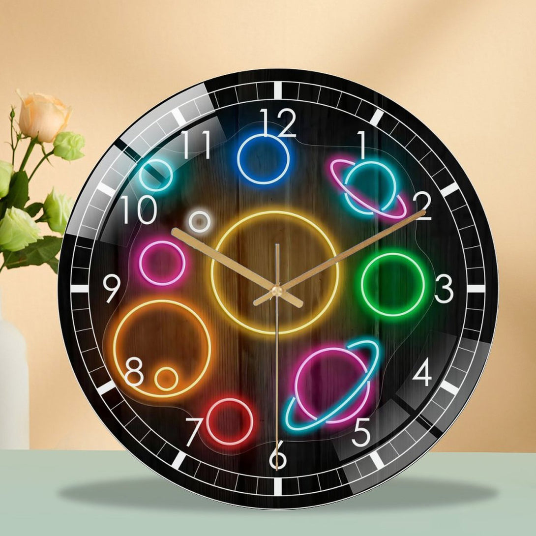 Decor Wall Clock: Space Planets Light Up Sign Glass Wall Clock – Bedroom Wall Art Wall Clock for Home Decor, Kids Room Decor, Space Wall Art, Christmas Gift for Home, Cosmos Style 12×12inch(30×30cm)