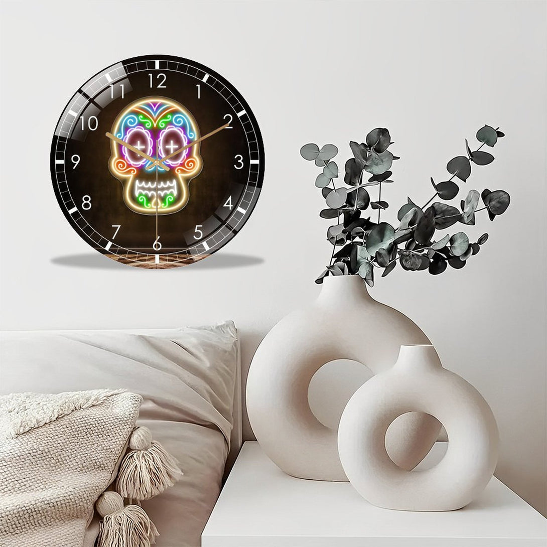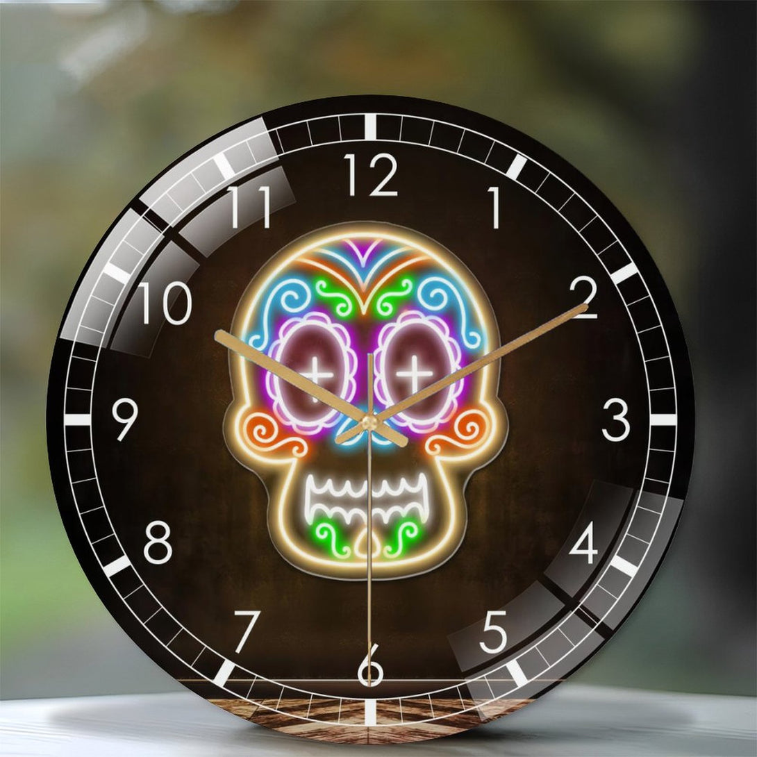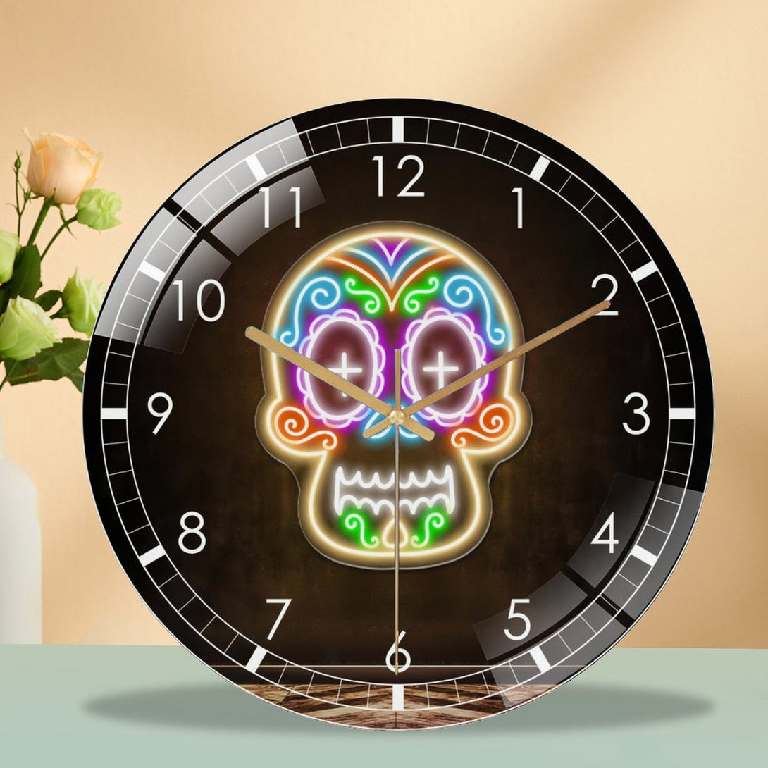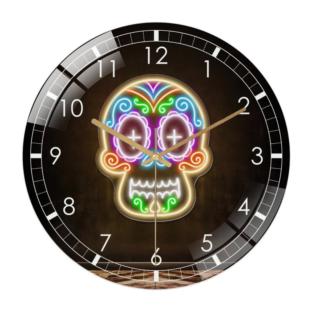 Decor Wall Clock: Sugar Skull Mexican Glass Wall Clock,Skull Bar Skull Beer Club Decor Wall Clock for Home Decor