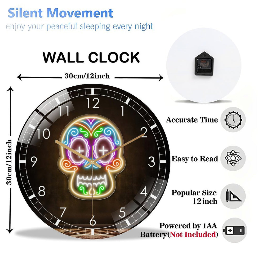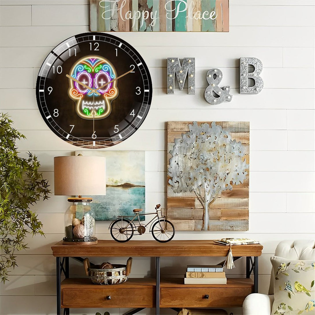 Sugar Skull Mexican Glass Wall Clock,Skull Bar Skull Beer Club Decor Wall Clock for Home Decor Hallo-ween Gho-st Boo Haunted House Party Wall Art.homes, Bars, Offices, Man Caves, Garages, And Livin,12×12inch(30×30cm)