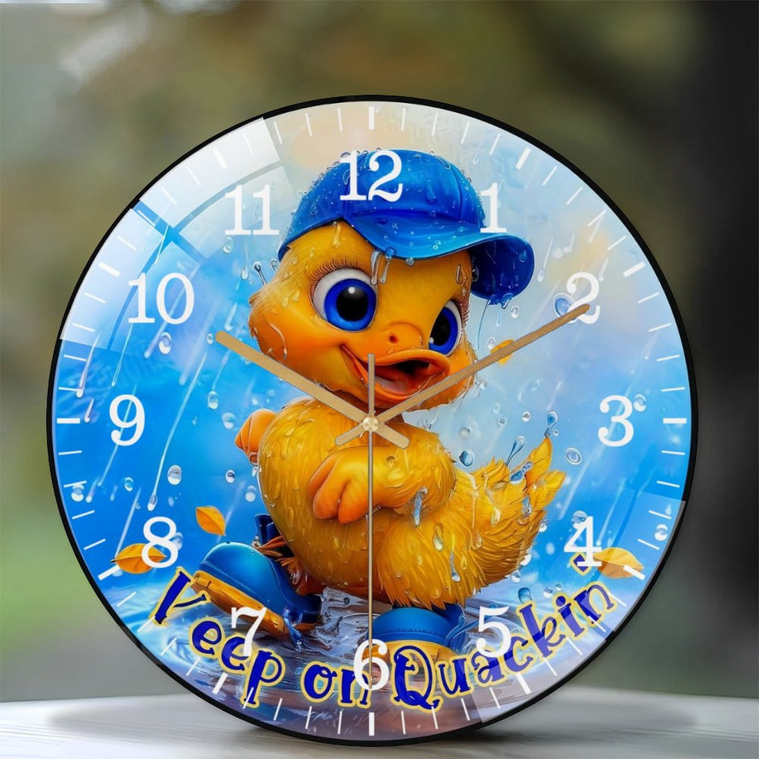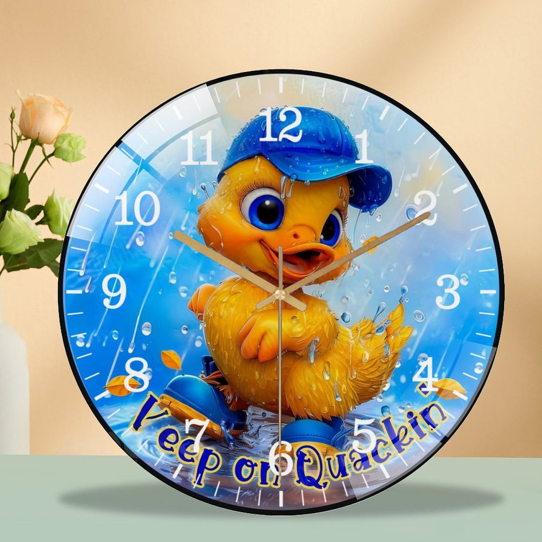 Summer Duck Glass Wall Clock, Duck Spring Wall Clock for Homes, Bars, Offices, Man Caves, Garages, And Living Rooms .Also Makes A Great Gift.,12×12inch(30×30cm)