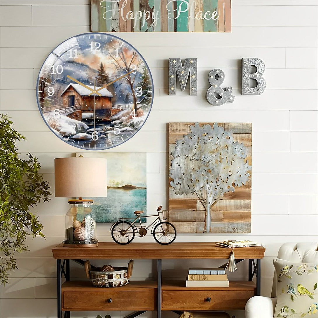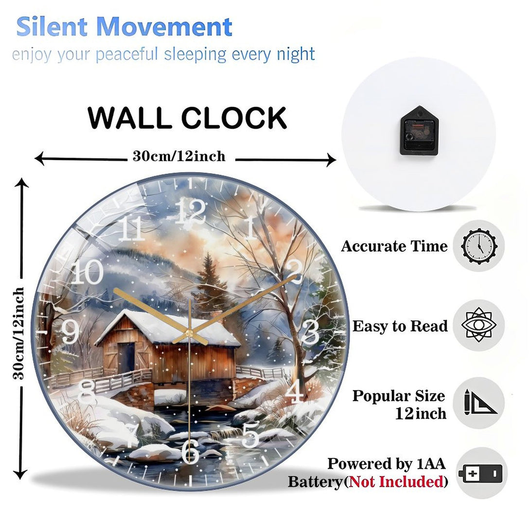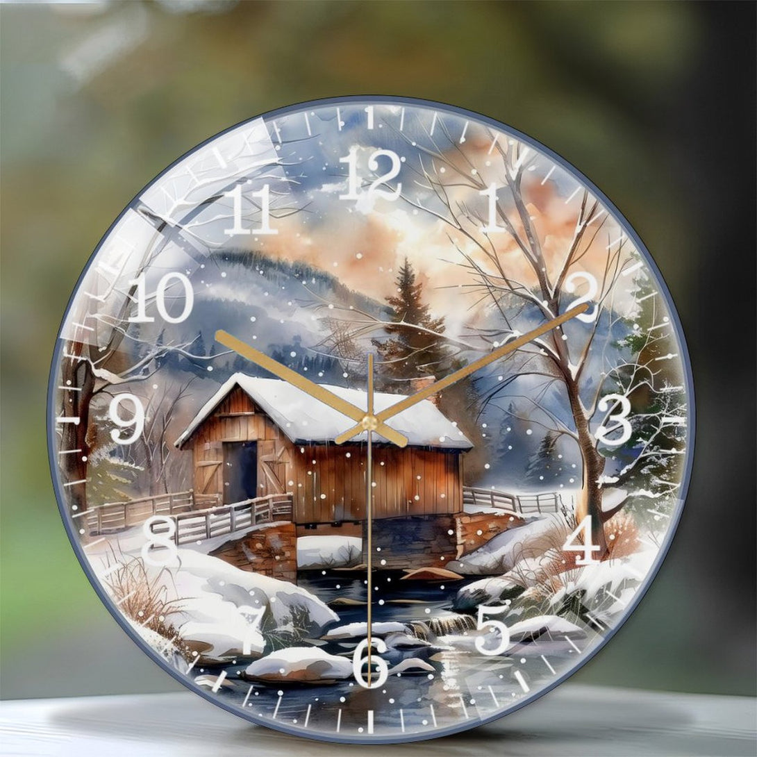Welcome Country Glass Wall Clock, Stream Creek Covered Bridge Decor Wall Clock for Homes, Bars, Offices, Man Caves, Garages, And Living Rooms .Also Makes A Great Gift.,12×12inch(30×30cm)