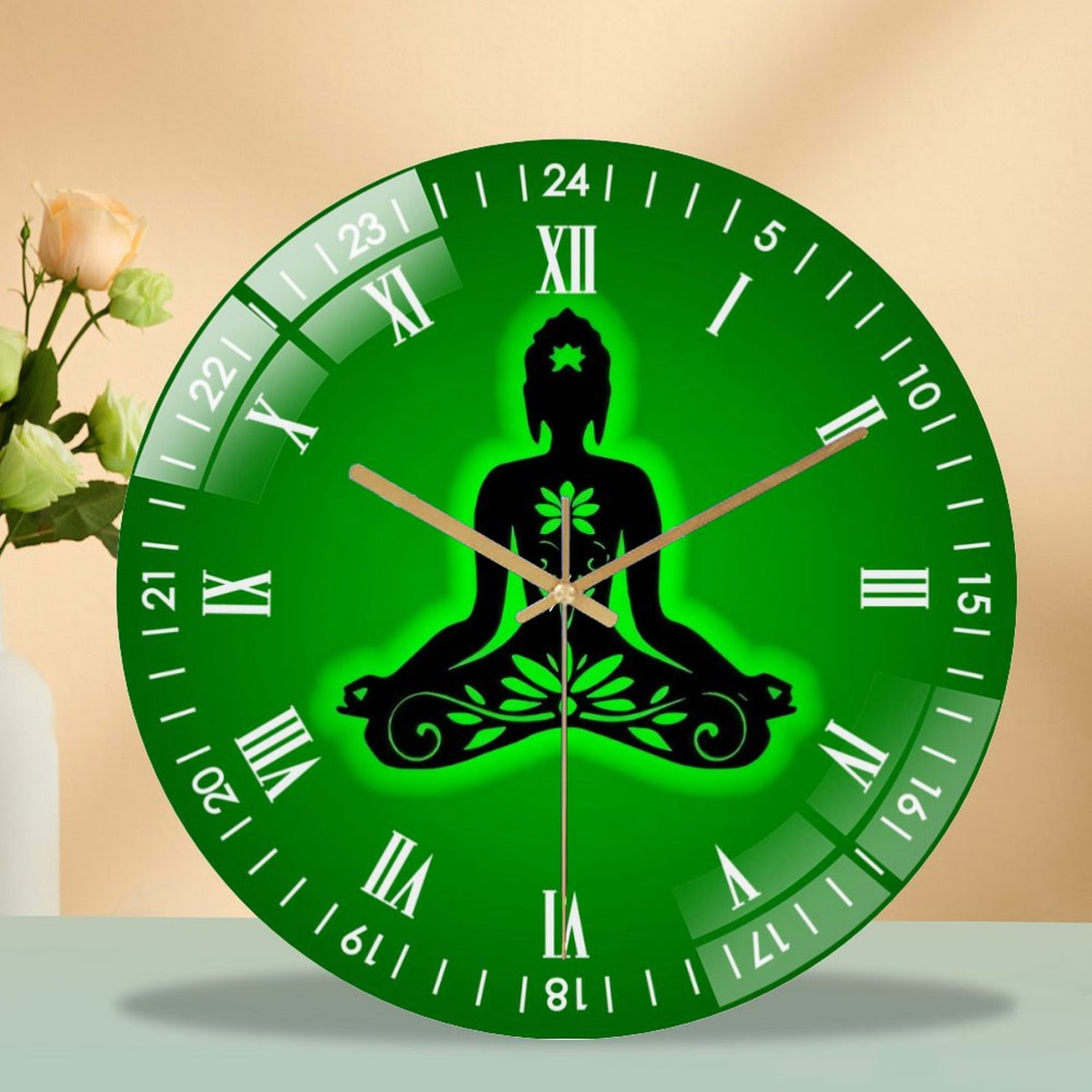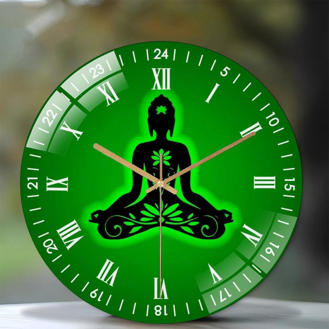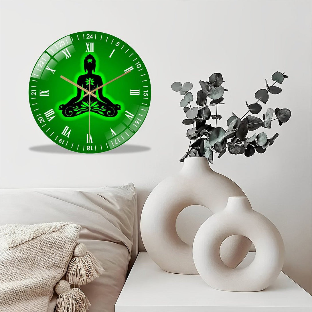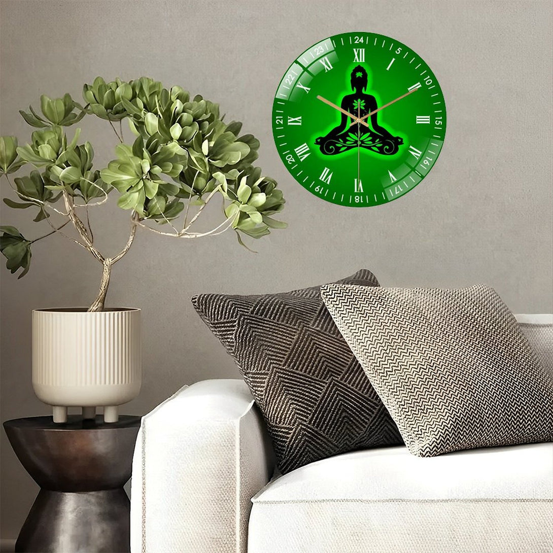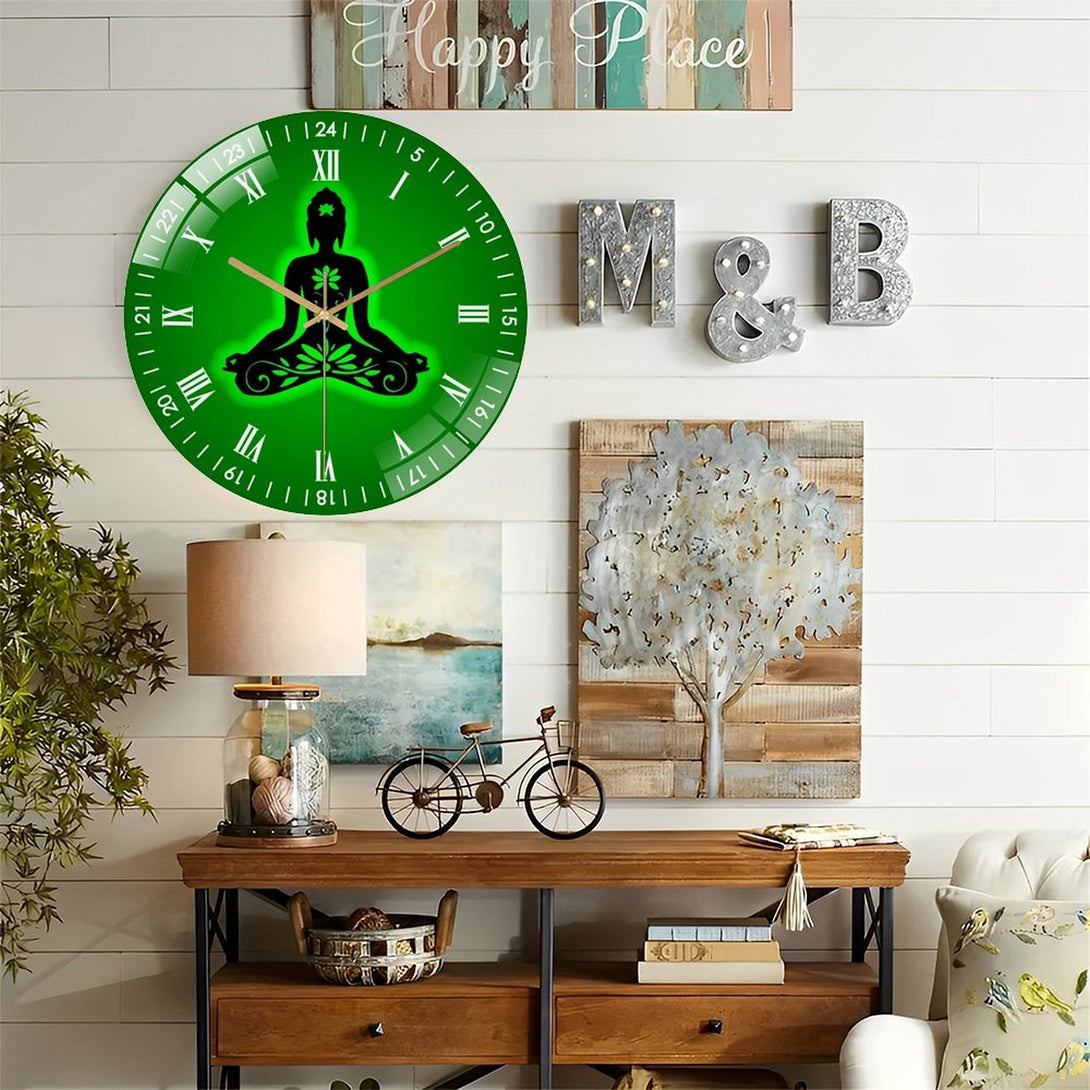 Decor Wall Clock: Yoga Buddha- Lotus Glass Wall Clock,Buddhist Namaste Decor Wall Clock for Homes, Bars, Offices, Man Caves, Garages, And Living Rooms .Also Makes A Great Gift.